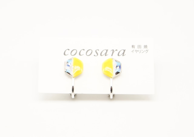 有田焼 イヤリング 六角形2トーンカモフラ黄色