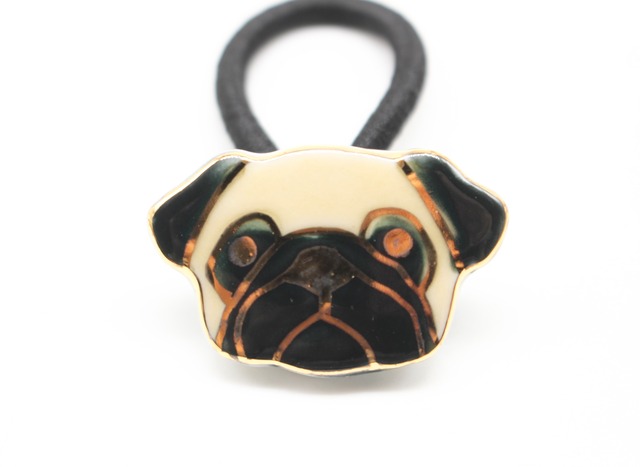 有田焼ヘアゴム パグ(ベージュ× ブラック×ゴールド)