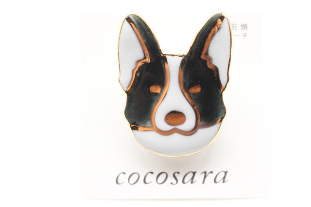 有田焼ブローチ コーギー①(ブラック×ゴールド)