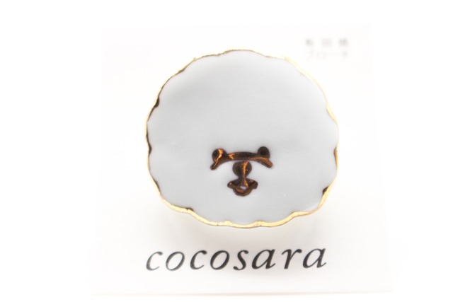 有田焼ブローチ ちいさめビションフリーゼ(ホワイト×ゴールド)