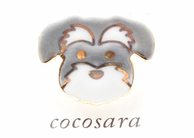 有田焼ブローチ シュナウザー(ライトグレー×ゴールド)