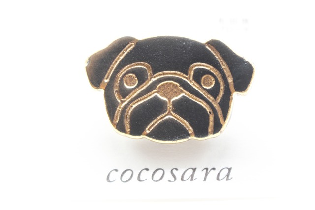 有田焼ブローチ パグ(マットブラック×ゴールド)