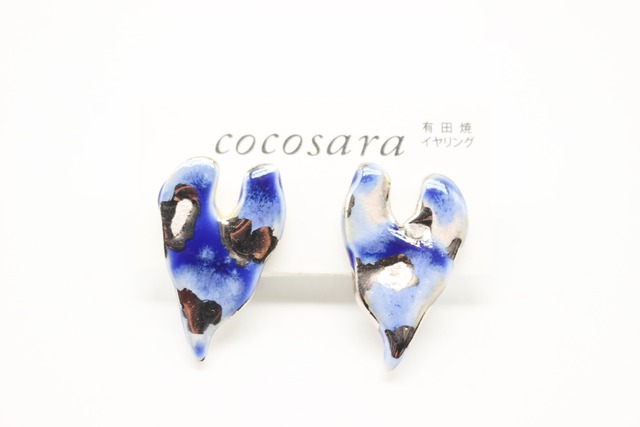 有田焼 イヤリング ブルーカモフラハート
