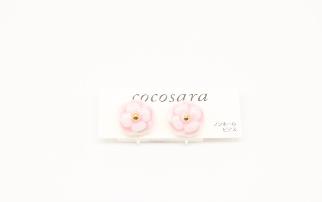 有田焼ノンホールピアス ぷっくりお花 ピンク