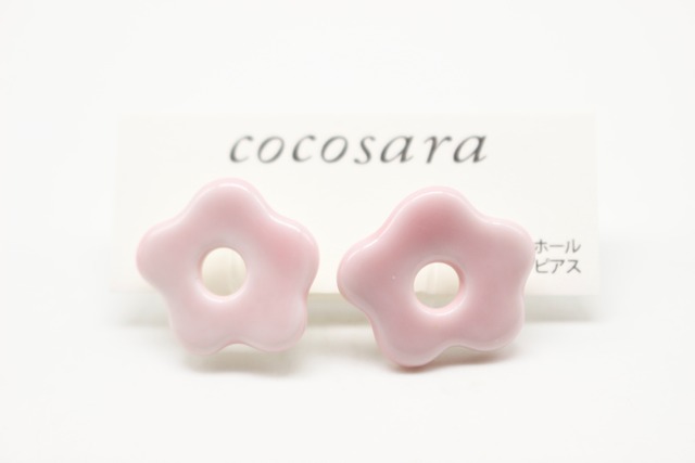 有田焼ノンホールピアス おはじきみたいなお花(ピンク)