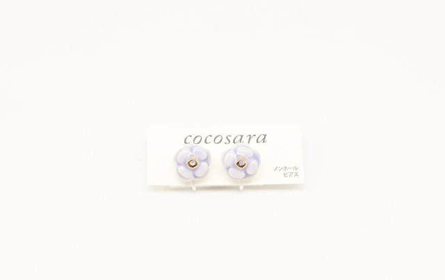 有田焼ノンホールピアス ぷっくりお花 パープル