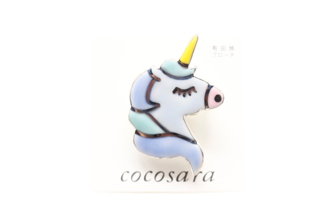 いろんな釉薬を使用してPOPなユニコーンになりました。 小さな女の子にもおすすめのブローチです。 素材:有田焼 幅:約3.0㎝ 高さ:約4.0㎝ 厚み:約5.0㎜ 重さ:約10.0g(金具含む) 絵付け:プラチナ彩(白金) ★商品ご購入の際は必ずご一読ください。 ~私たちの作品について。~ http://bit.ly/2YKWH25