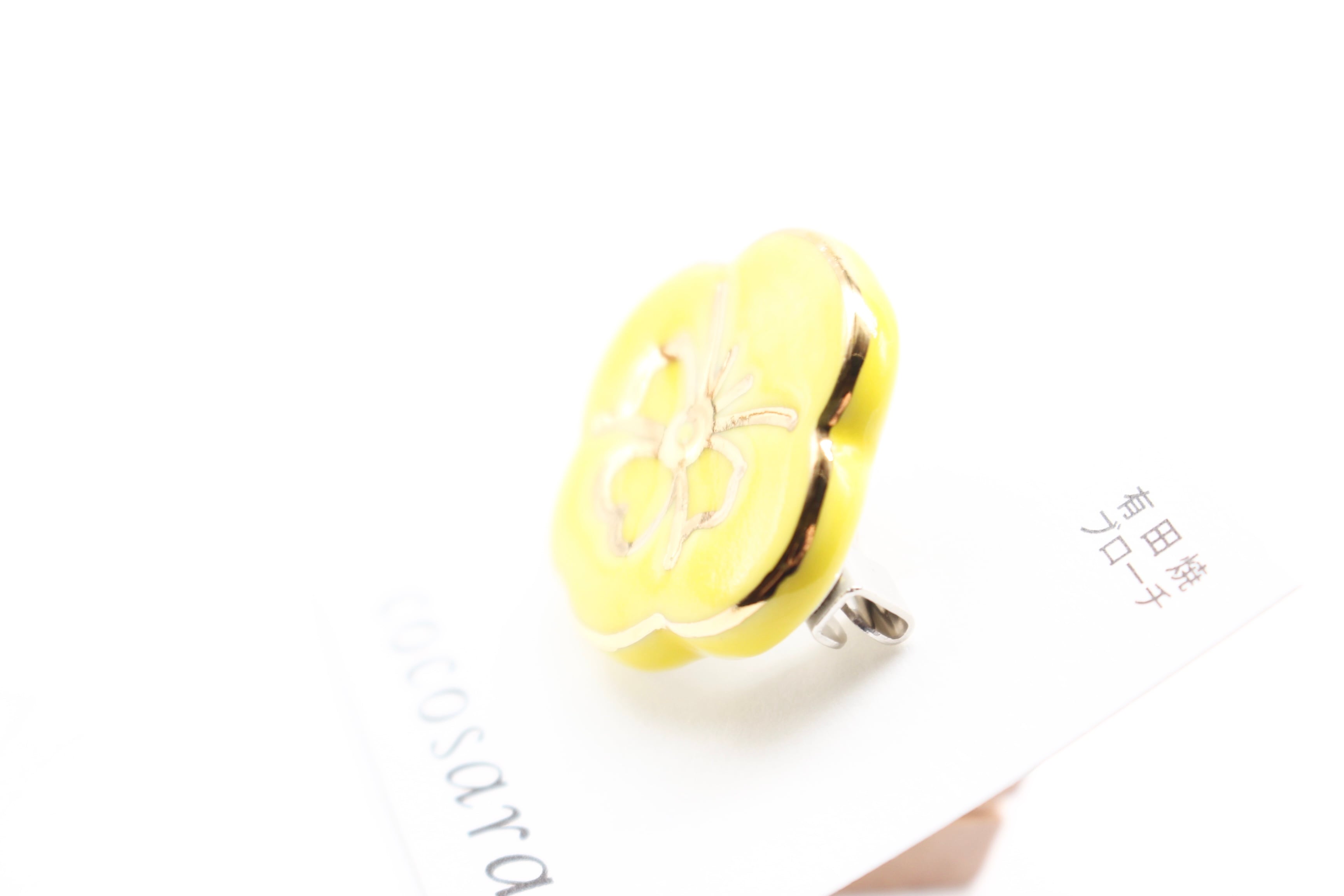 有田焼ブローチ パンジーモチーフ(きいろ)