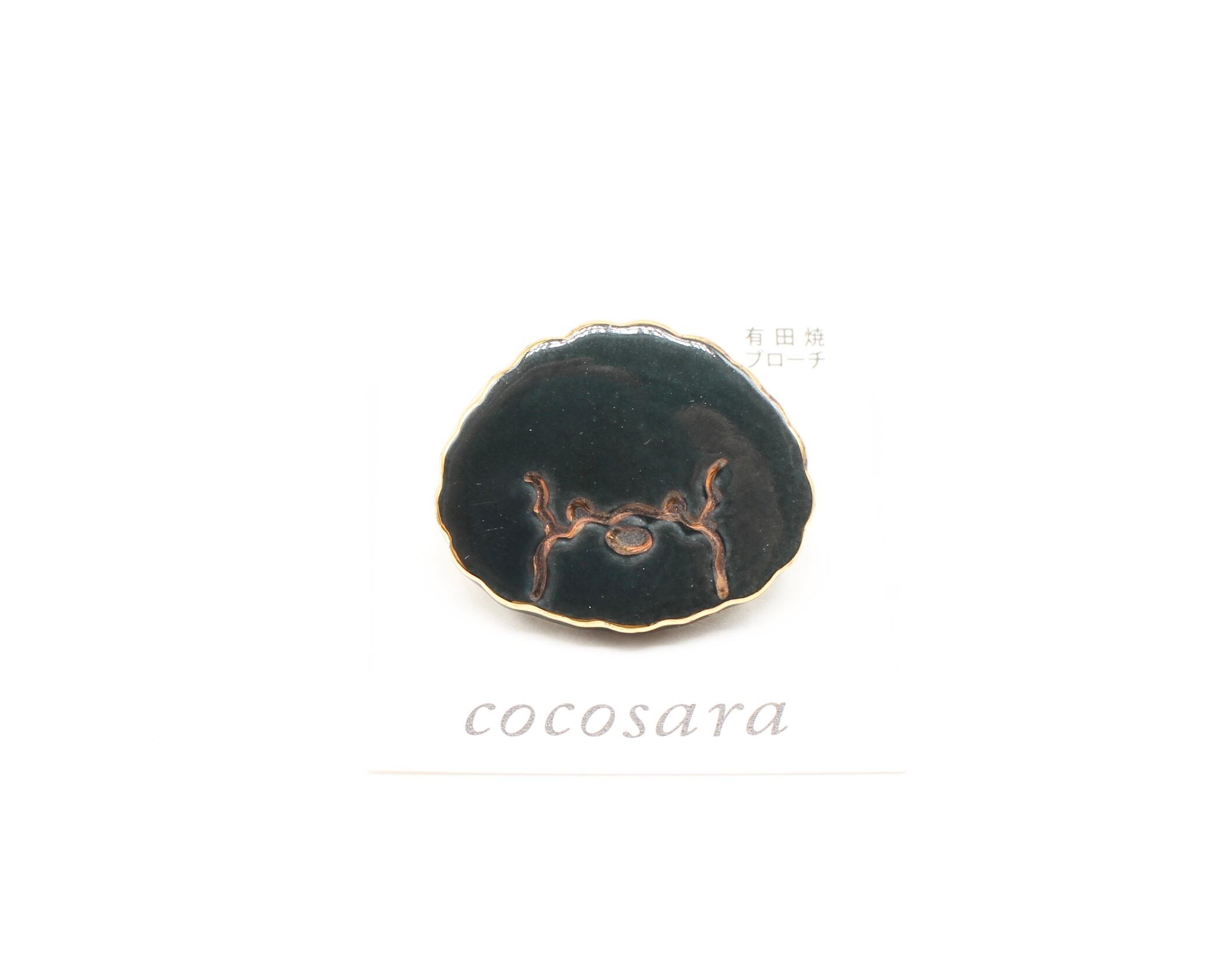 手のひらサイズのかわいらしい有田焼のプードルブローチです。クロとゴールドの組み合わせが上品で、どんなコーディネートにも合わせやすい一品です。特に、ジャケットやコート、バッグなどのアクセントにピッタリ。