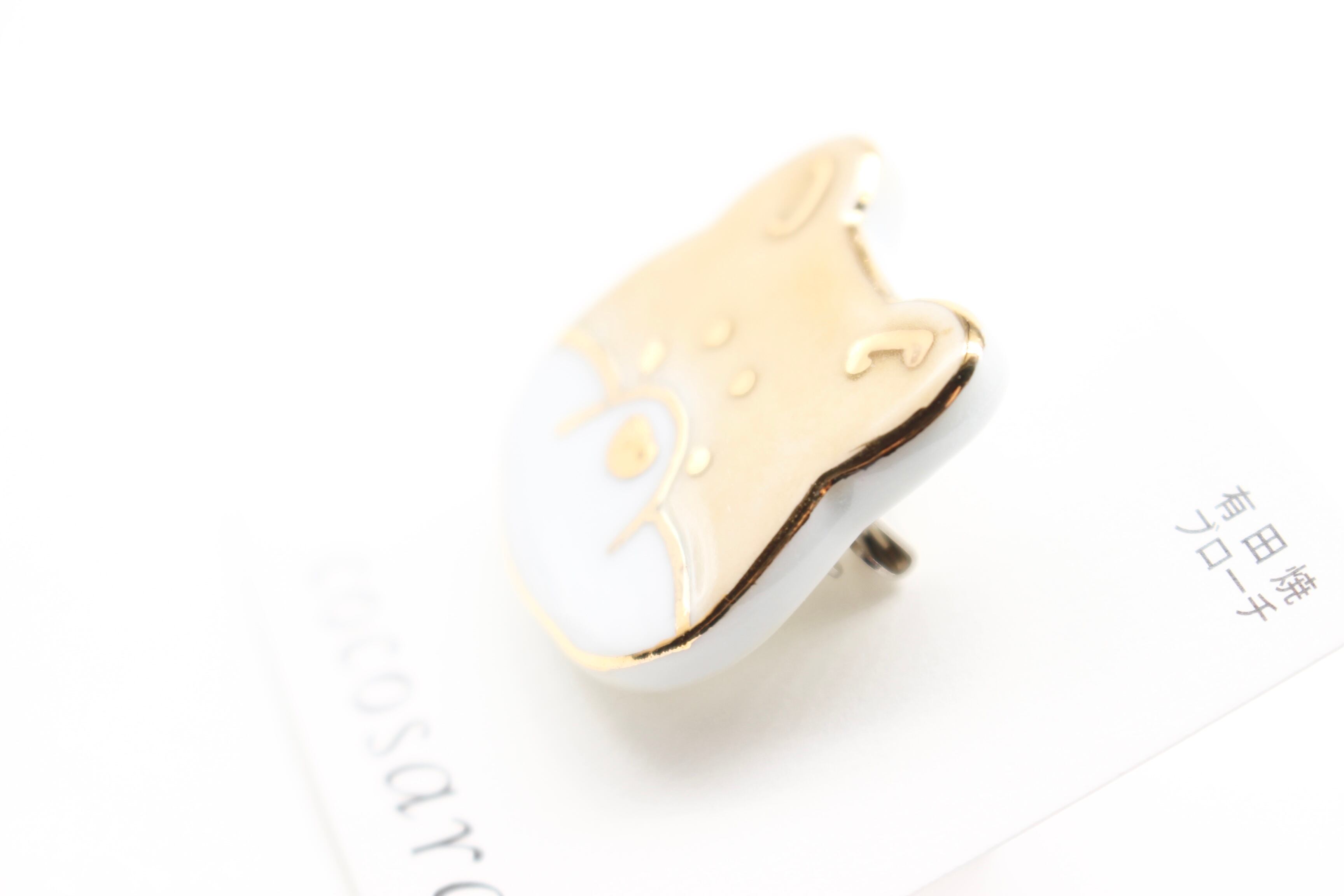 有田焼ブローチ 柴犬(ベージュ×ゴールド)