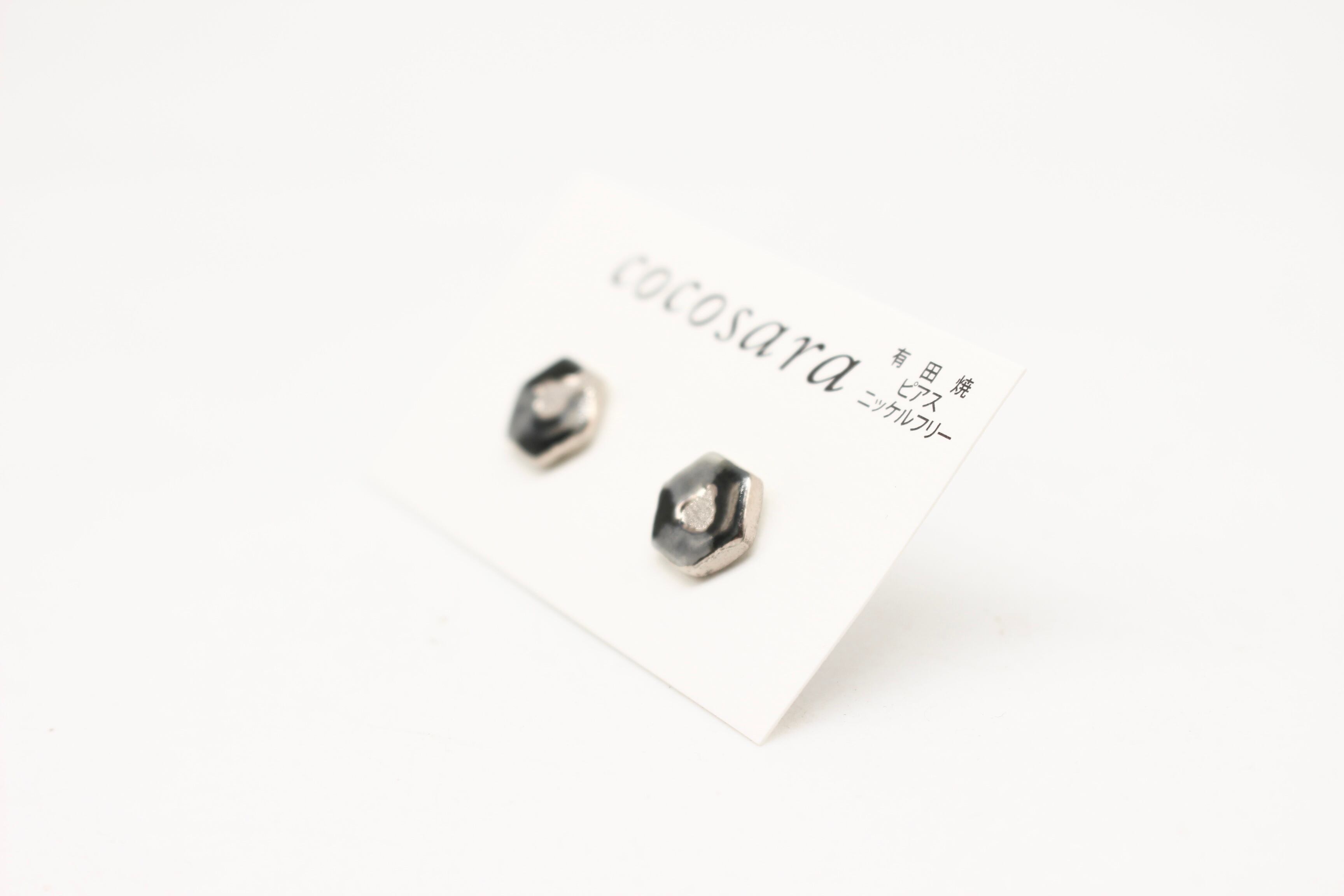 有田焼ピアス 六角カモフラージュ ブラック