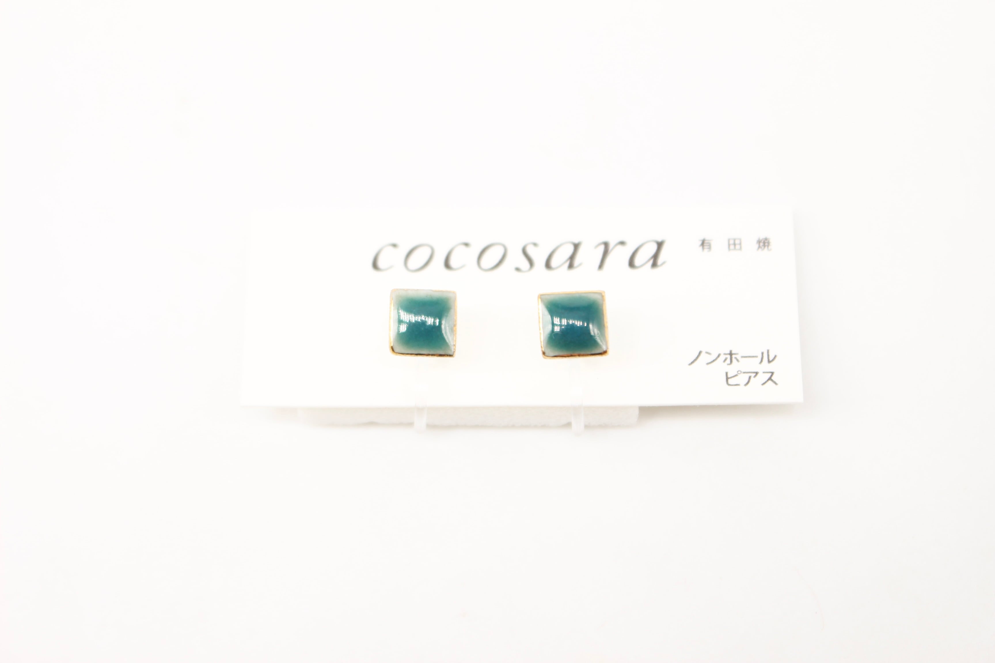 有田焼ノンホールピアス スクエア グリーン×ゴールド