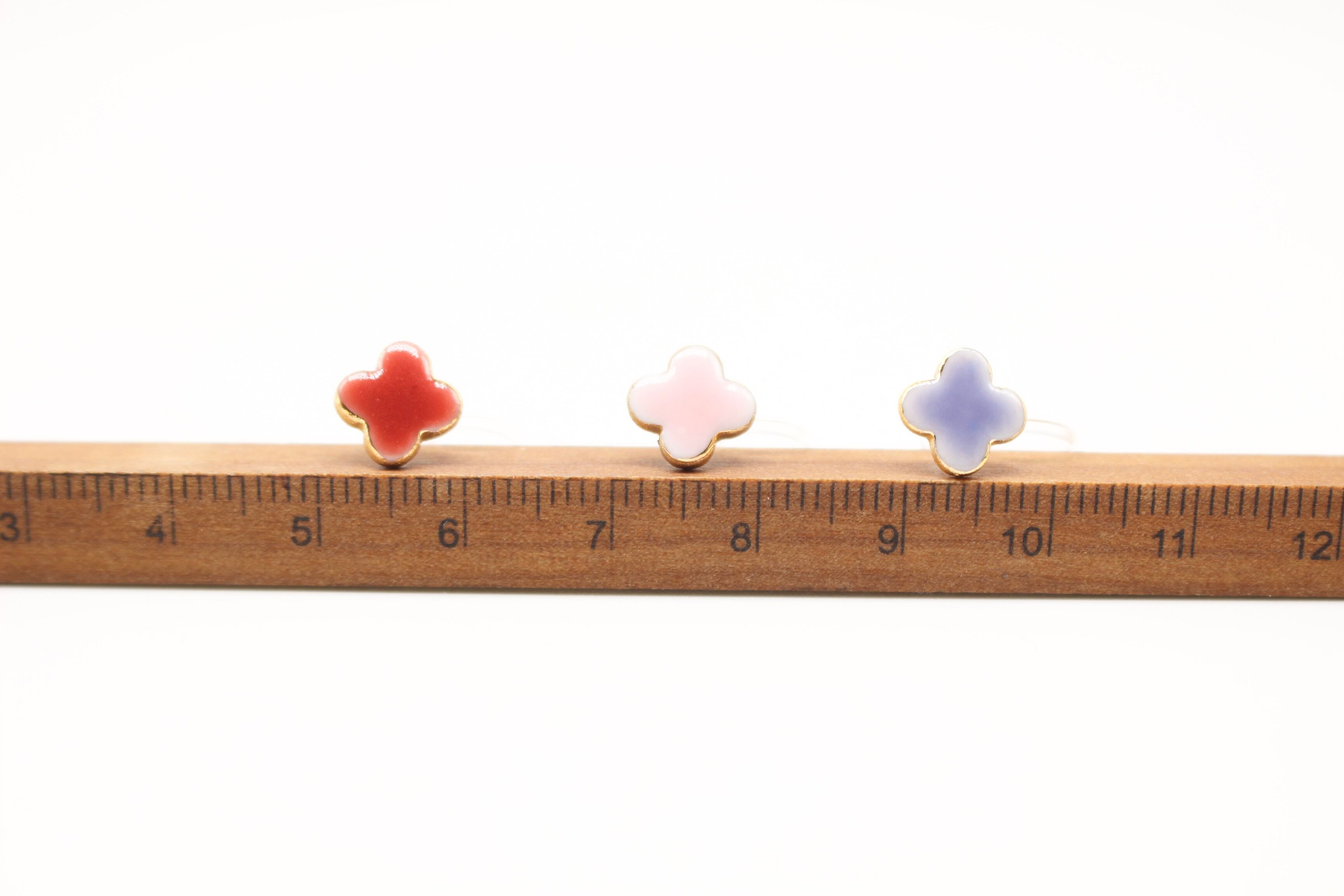 有田焼ノンホールピアス 四葉 パープル×ゴールド