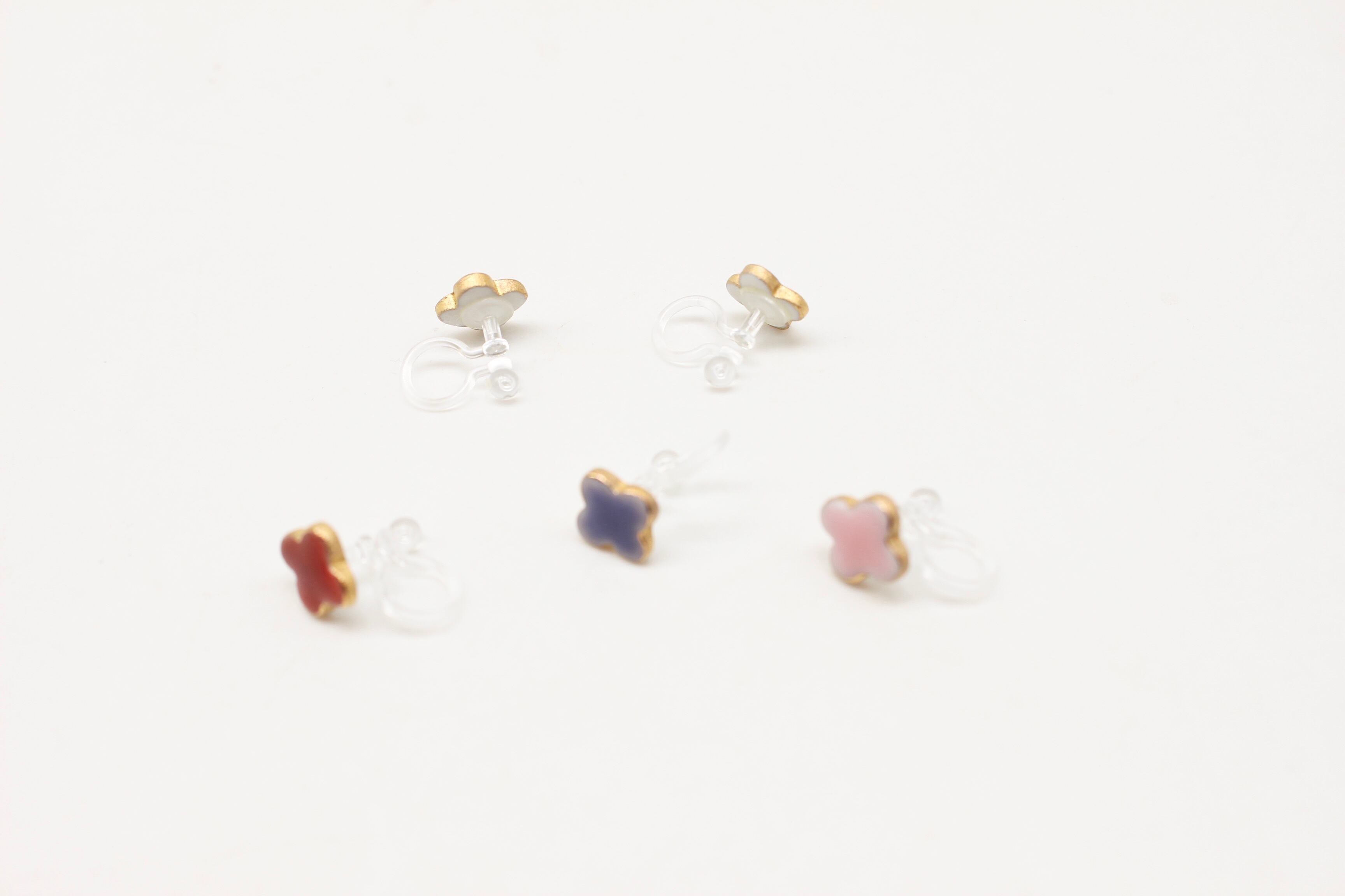 有田焼ノンホールピアス 四葉 ピンク×ゴールド