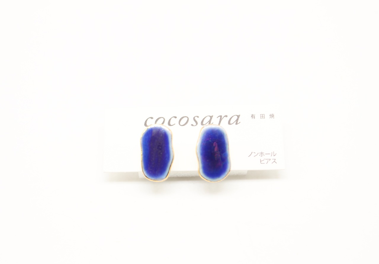 有田焼ノンホールピアス ニュアンスモチーフ オーロラブルー
