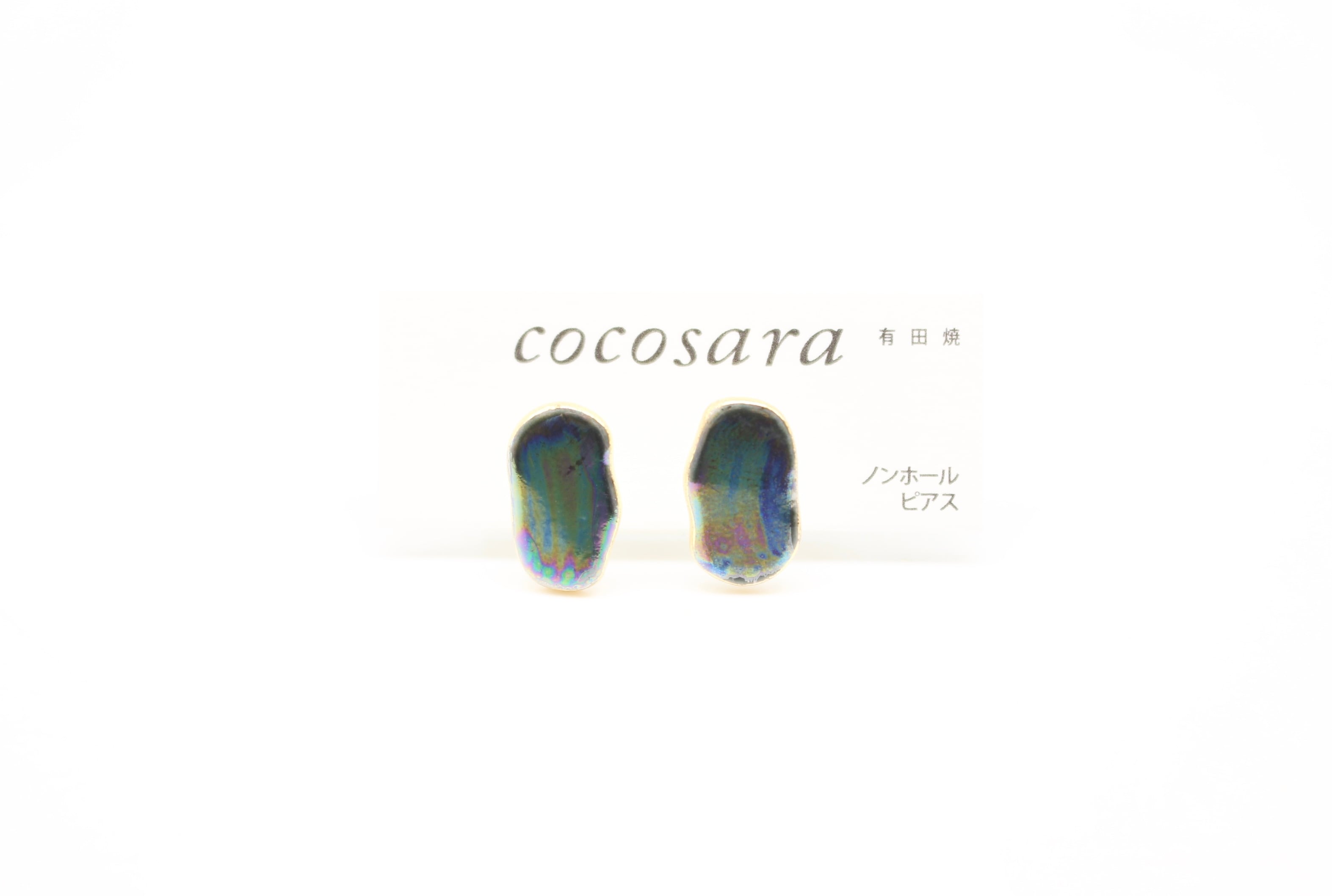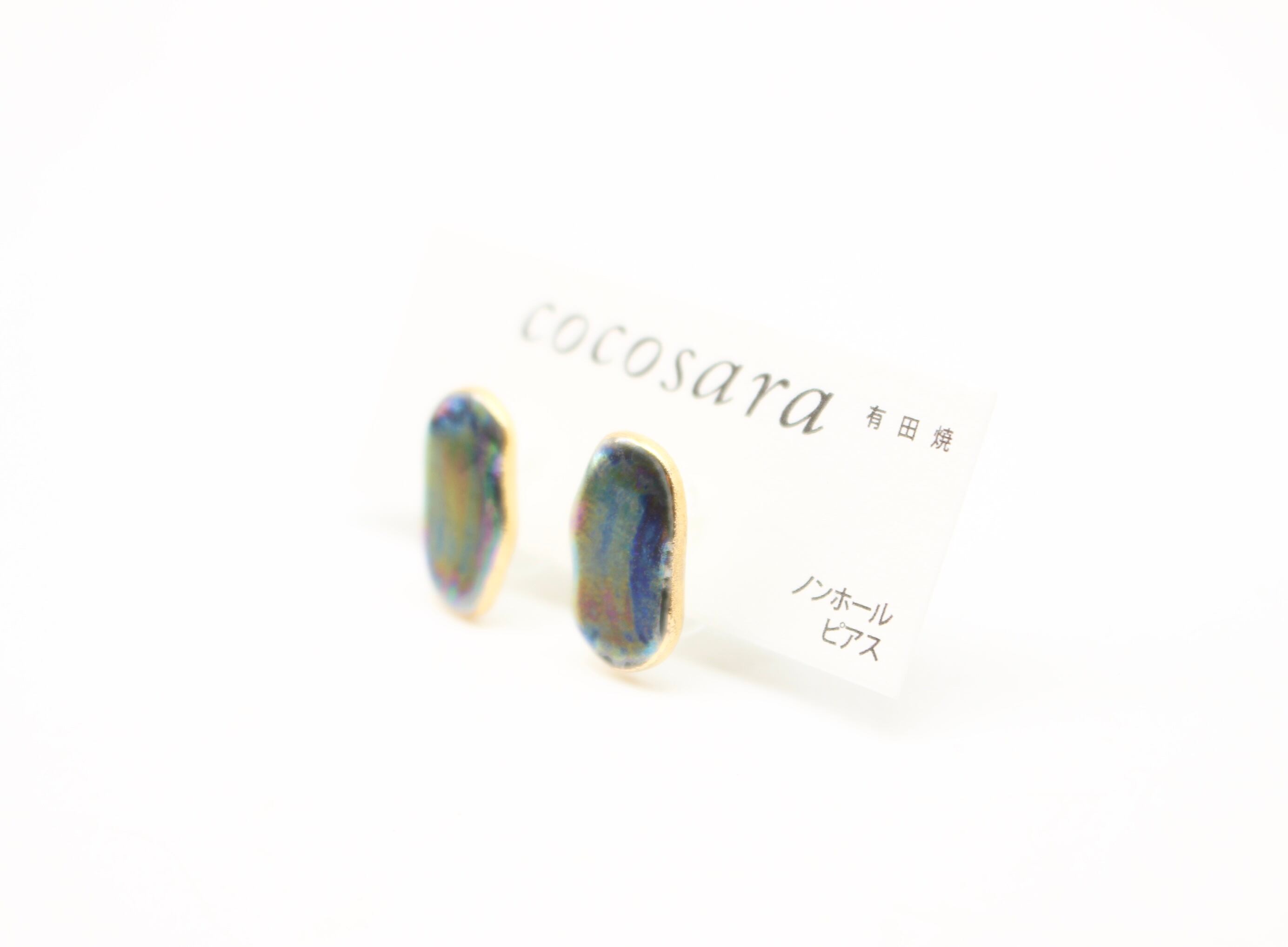 有田焼ノンホールピアス ニュアンスモチーフ オーロラグリーン