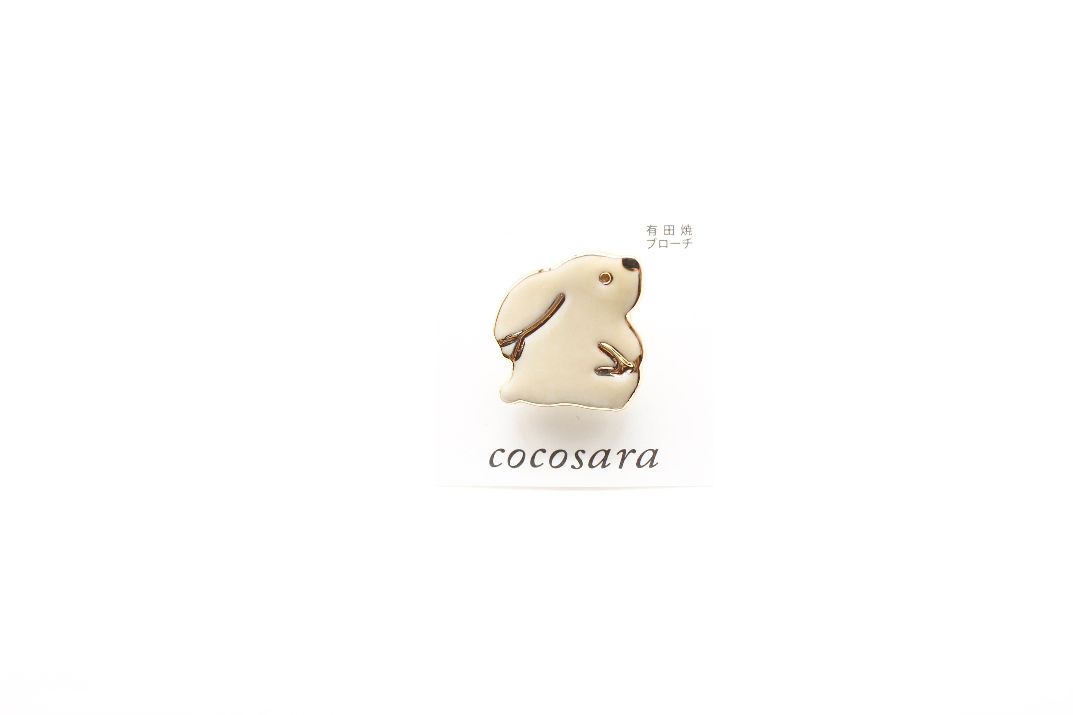 有田焼ブローチ おすわりうさぎ(ベージュ)