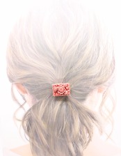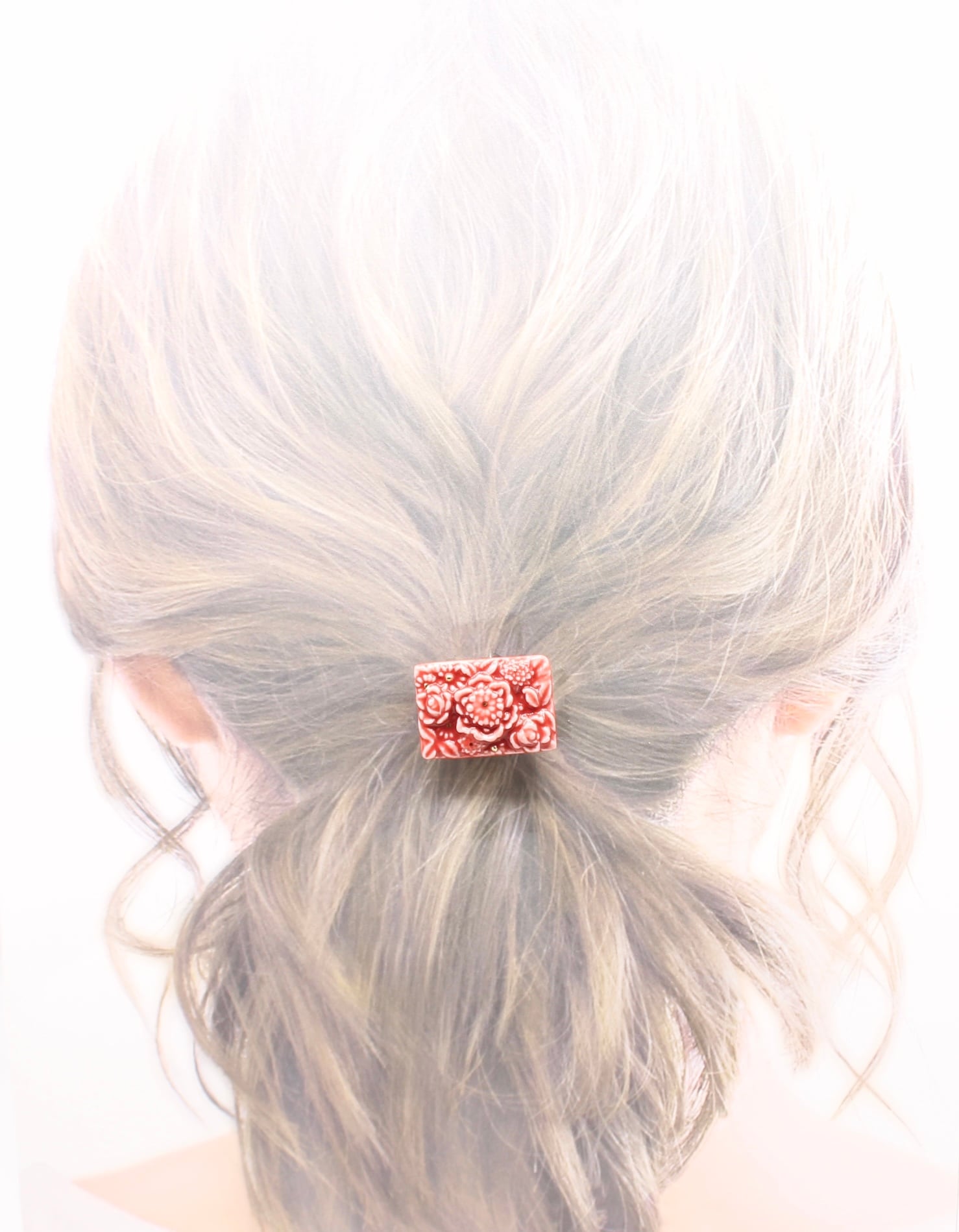 有田焼ヘアゴム スクエア 花(赤)