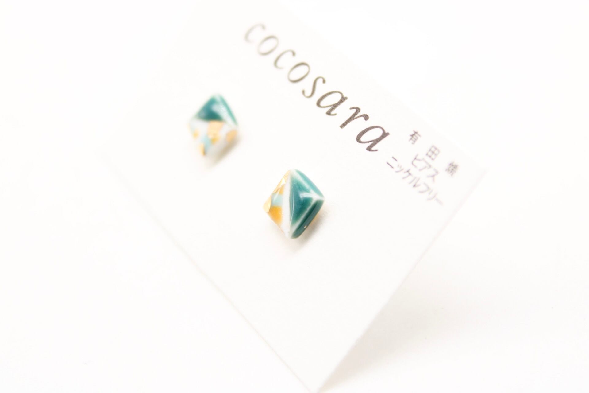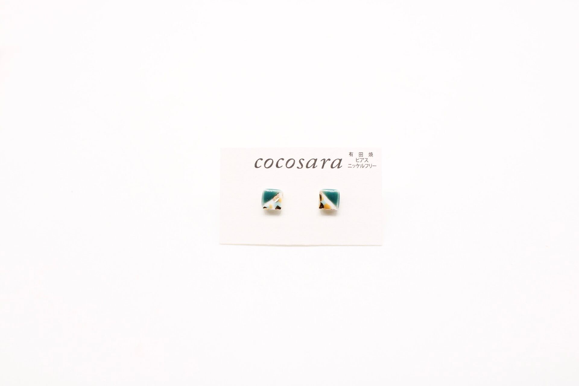 シンプルで美しい有田焼ピアス です。正方形のデザインがスタイリッシュで大人っぽい印象を与えます。特徴的な有田焼の風合いや色味を活かしたデザインなので、シンプルながらも存在感があります。一つ一つ手作業で丁寧に作られており、職人の技が光る逸品です。