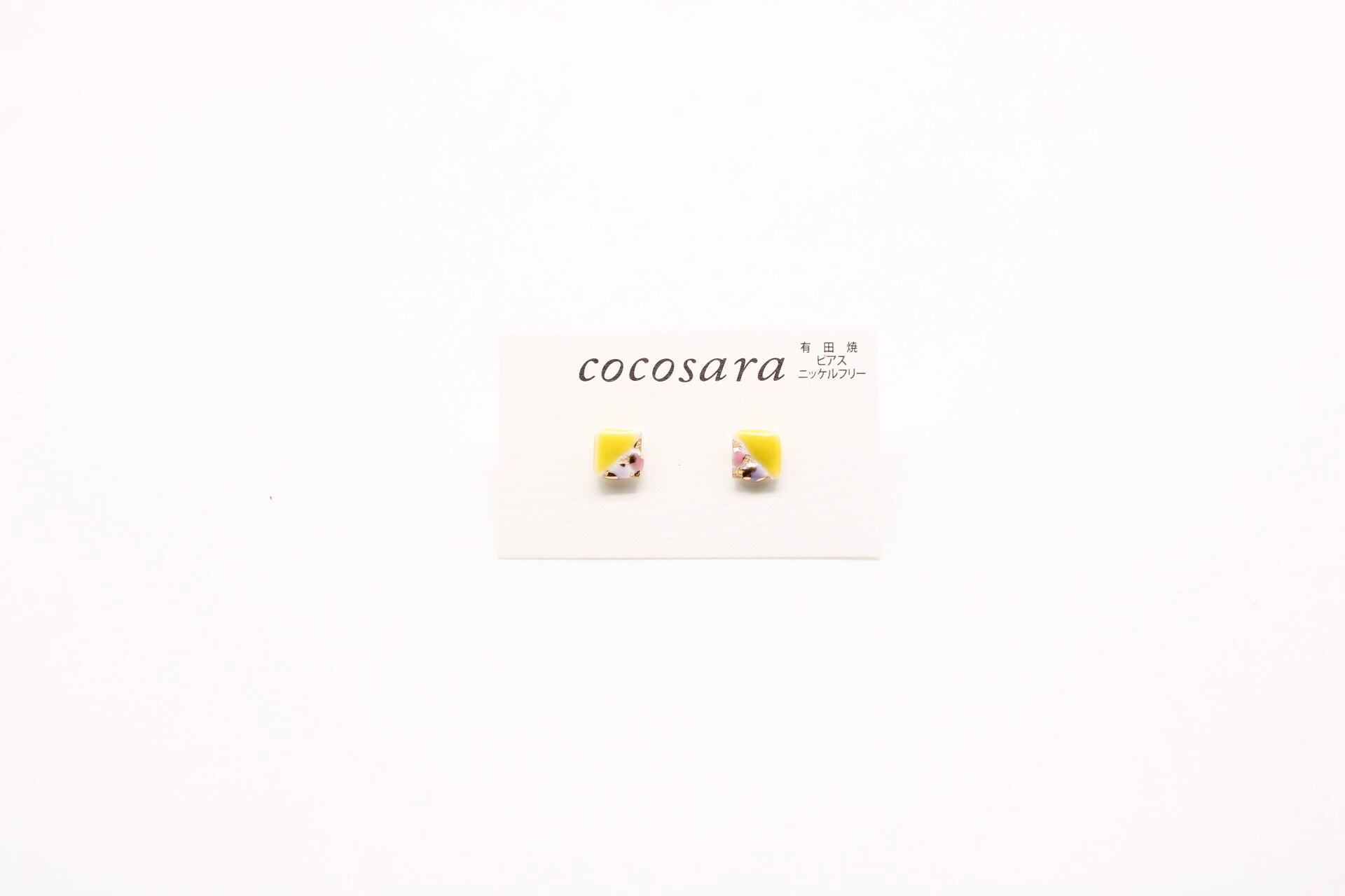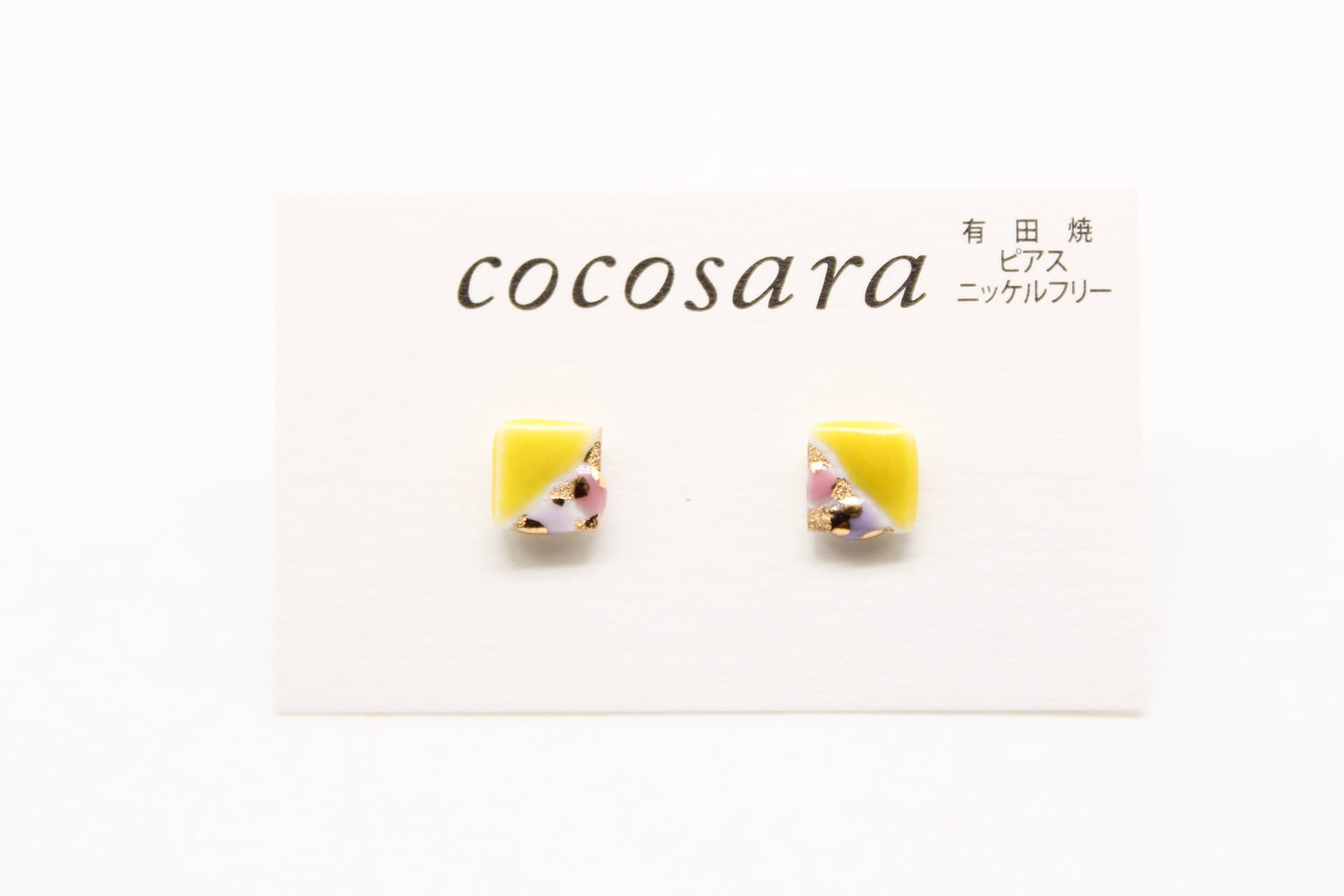 シンプルで美しい有田焼ピアス です。正方形のデザインがスタイリッシュで大人っぽい印象を与えます。特徴的な有田焼の風合いや色味を活かしたデザインなので、シンプルながらも存在感があります。一つ一つ手作業で丁寧に作られており、職人の技が光る逸品です。