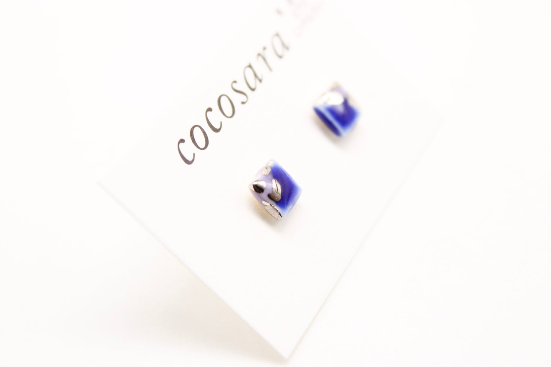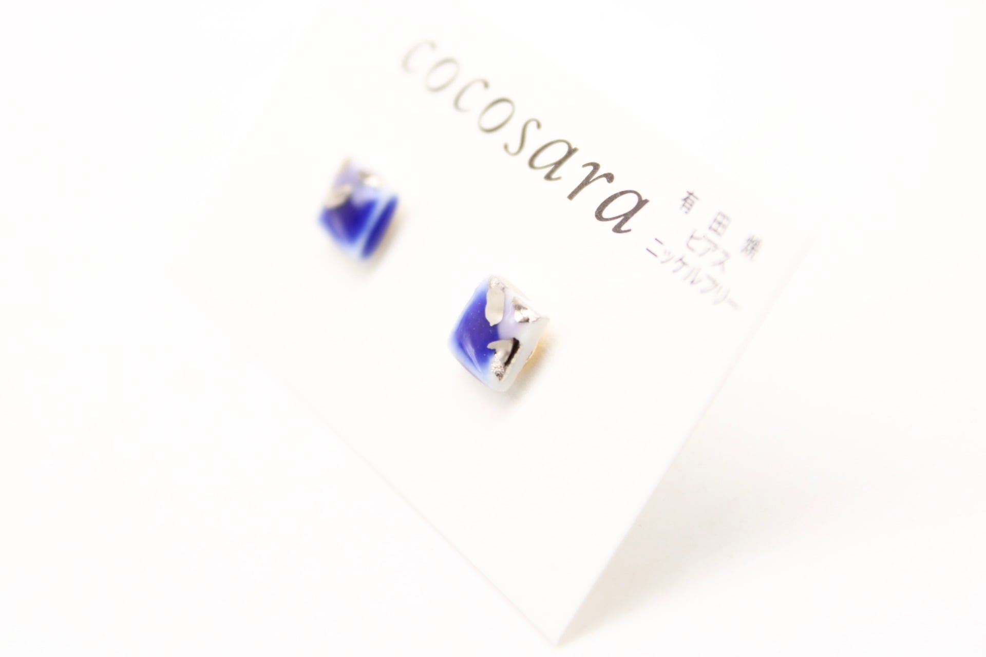 シンプルで美しい有田焼ピアス です。正方形のデザインがスタイリッシュで大人っぽい印象を与えます。特徴的な有田焼の風合いや色味を活かしたデザインなので、シンプルながらも存在感があります。一つ一つ手作業で丁寧に作られており、職人の技が光る逸品です。