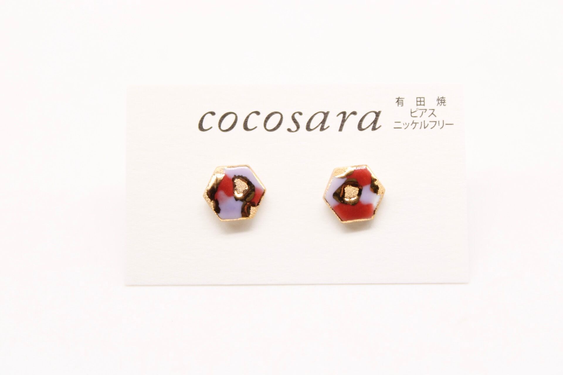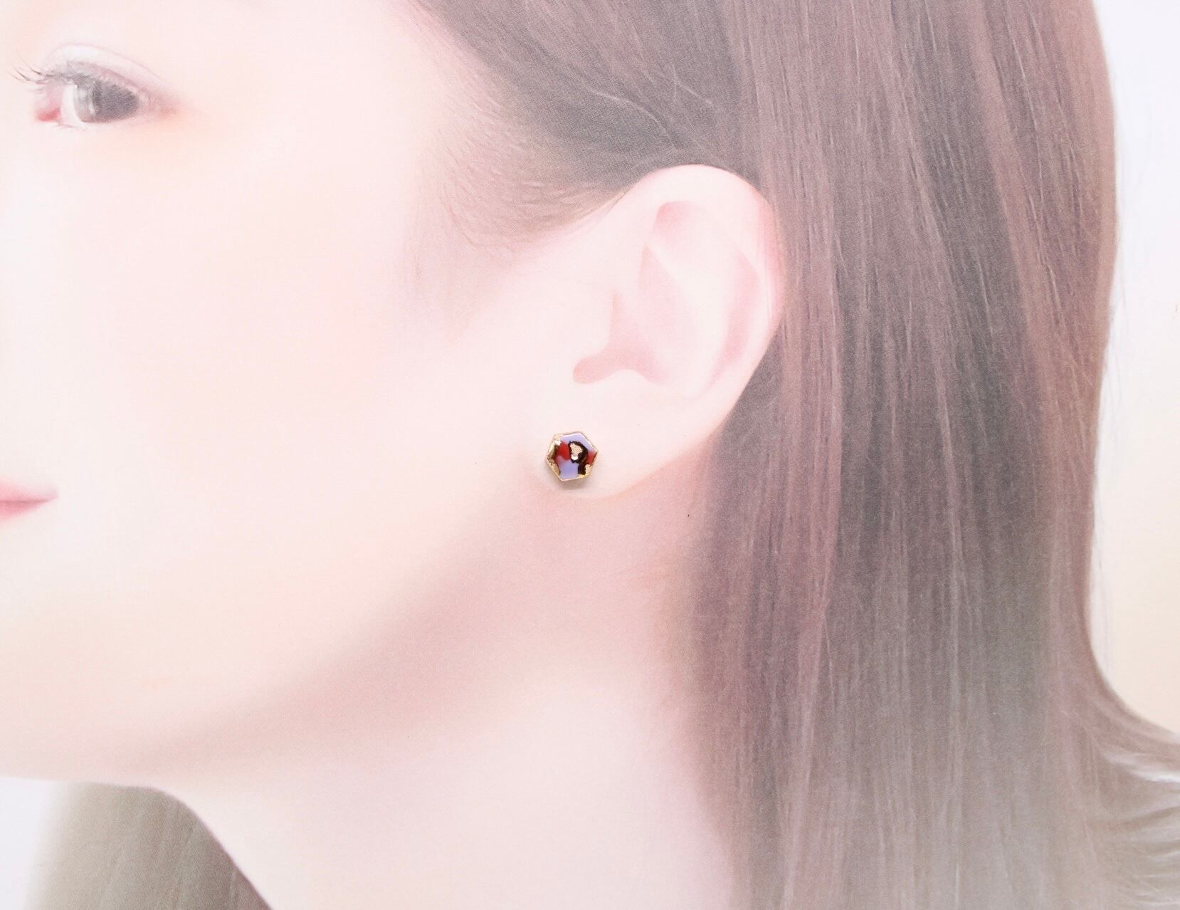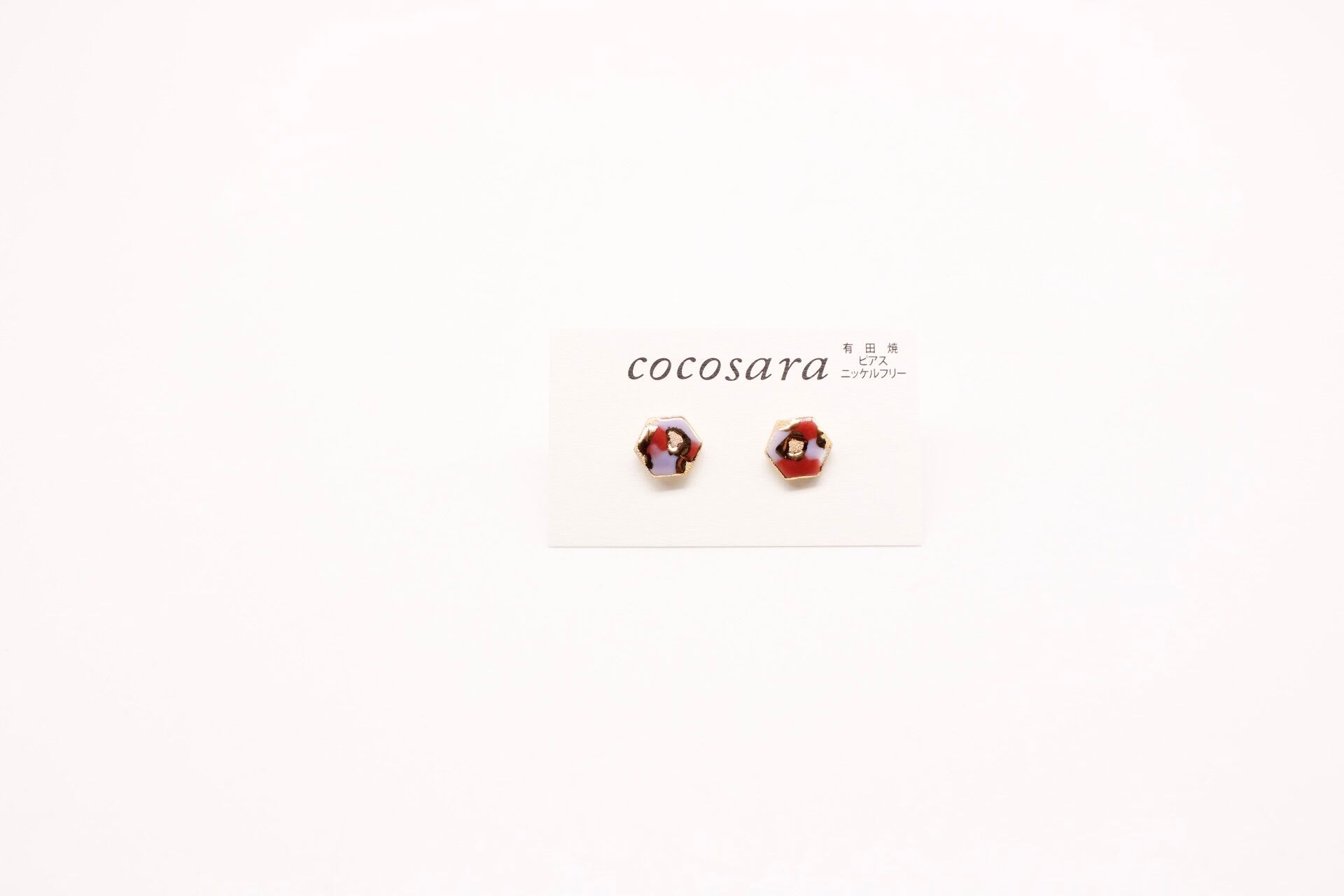 有田焼ピアス 六角形(カモフラ)1