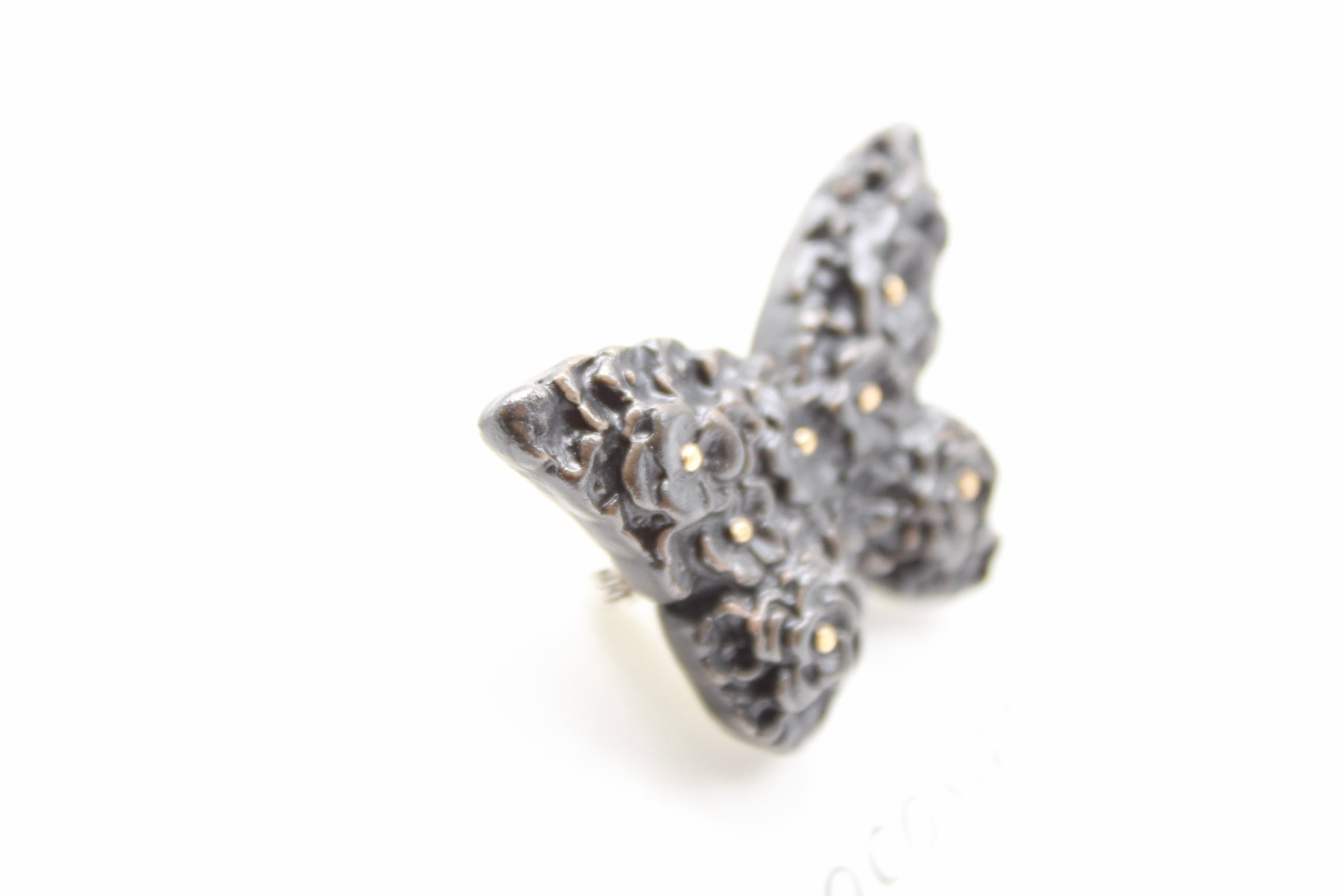 有田焼ブローチ フラワーバタフライ(マットブラック)