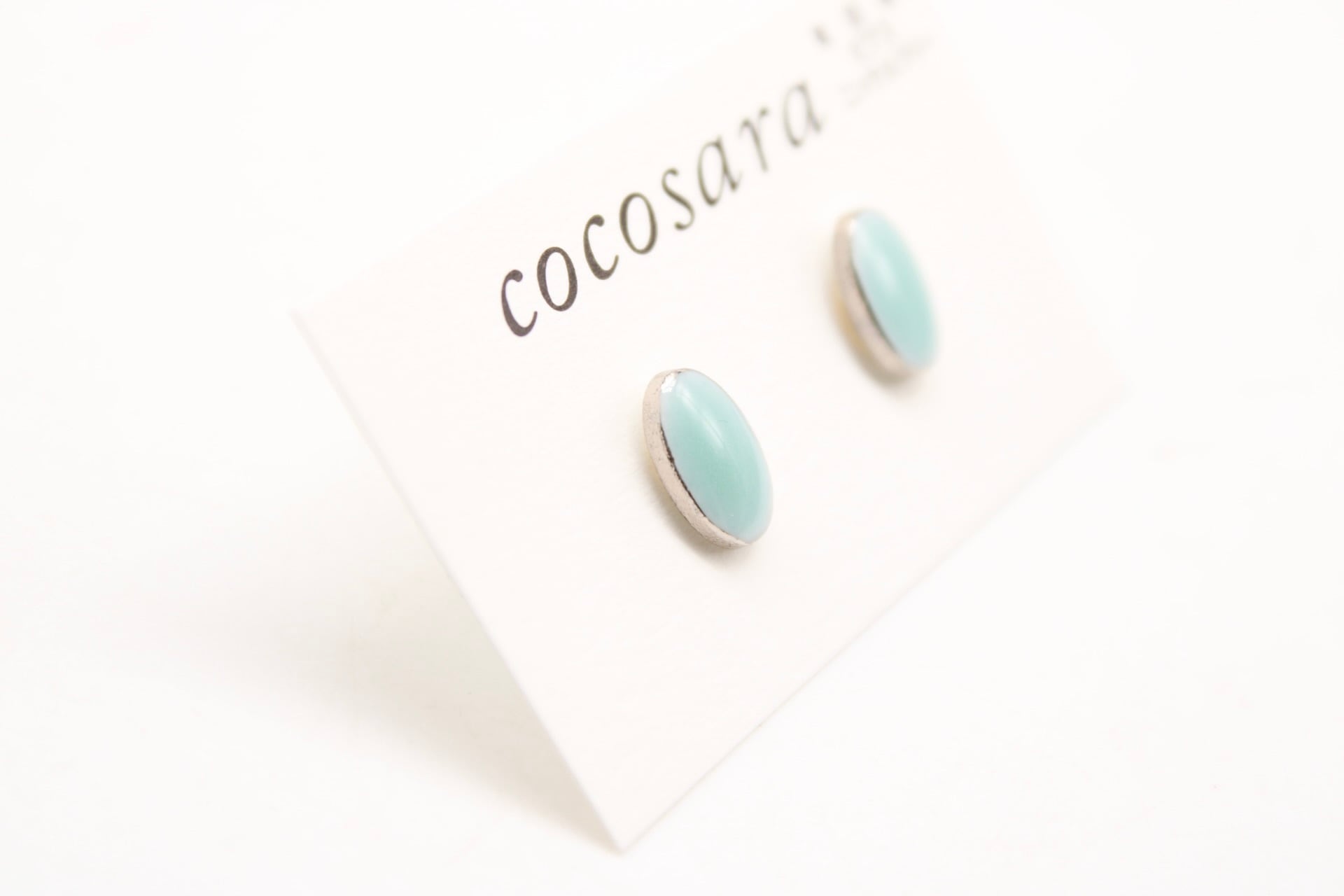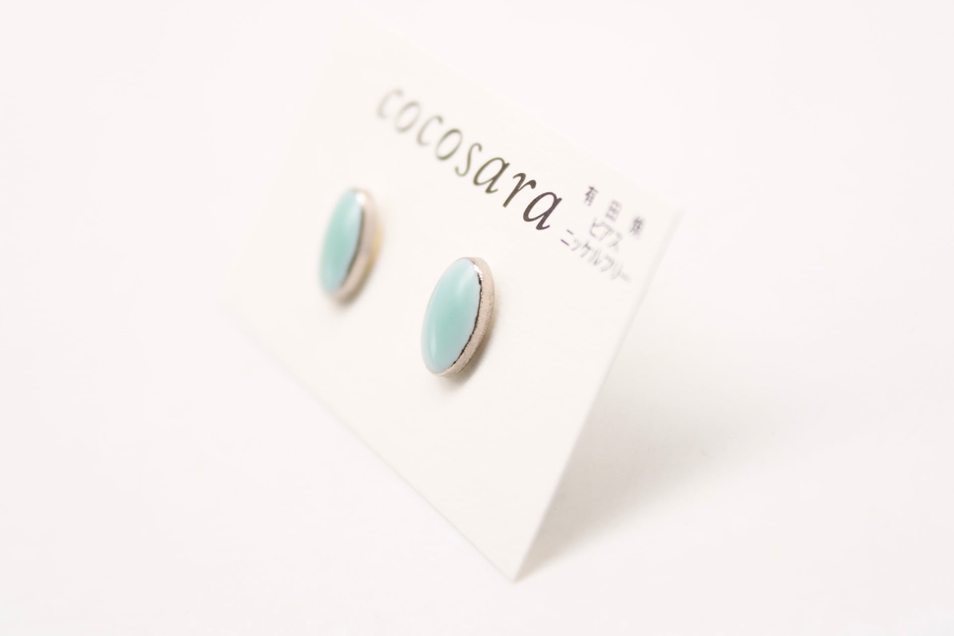 シンプルなデザインが美しい有田焼ピアス、シンプルOval です。楕円形のフォルムが洗練された印象を与えます。シンプルながらも存在感があり、どんなスタイルにも合わせやすく、幅広いシーンで活躍してくれます。