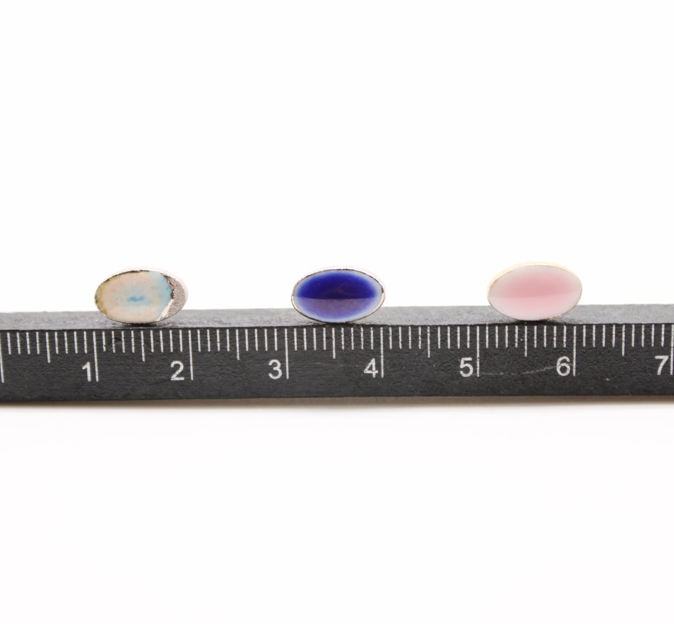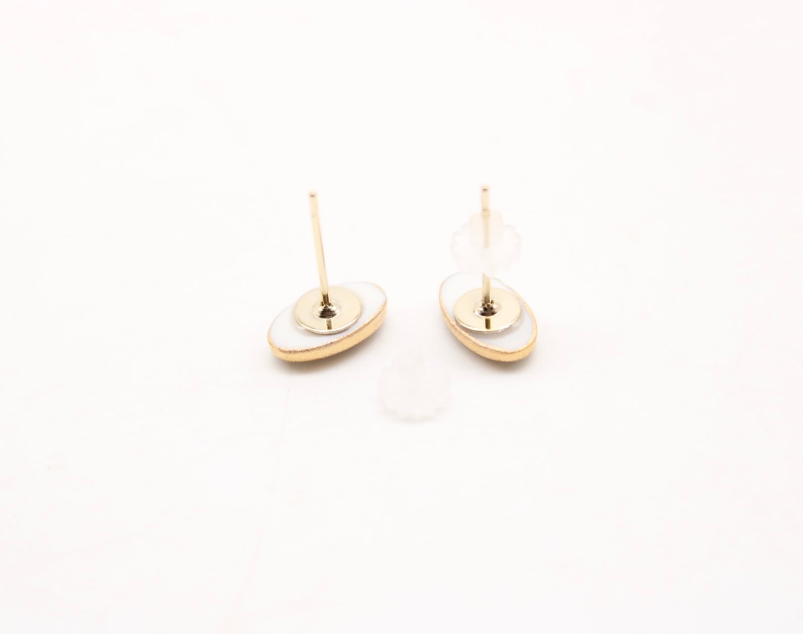 シンプルなデザインが美しい有田焼ピアス、シンプルOval です。楕円形のフォルムが洗練された印象を与えます。シンプルながらも存在感があり、どんなスタイルにも合わせやすく、幅広いシーンで活躍してくれます。