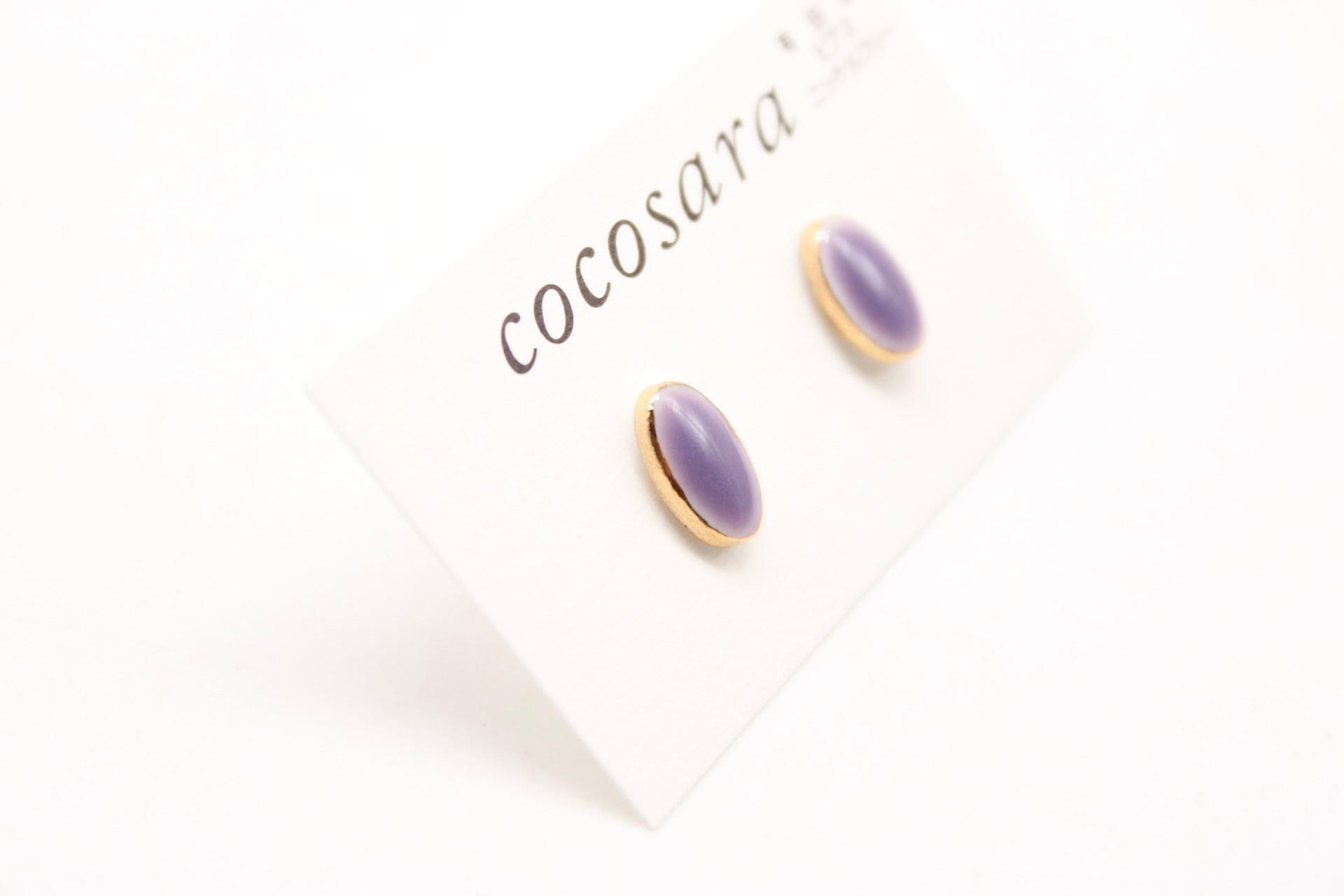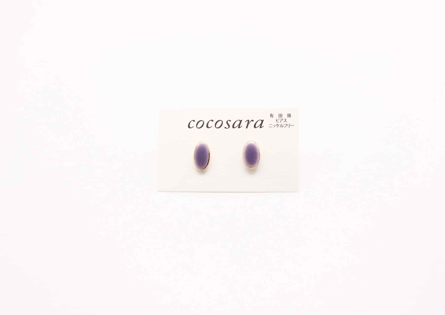 シンプルなデザインが美しい有田焼ピアス、シンプルOval です。楕円形のフォルムが洗練された印象を与えます。シンプルながらも存在感があり、どんなスタイルにも合わせやすく、幅広いシーンで活躍してくれます。