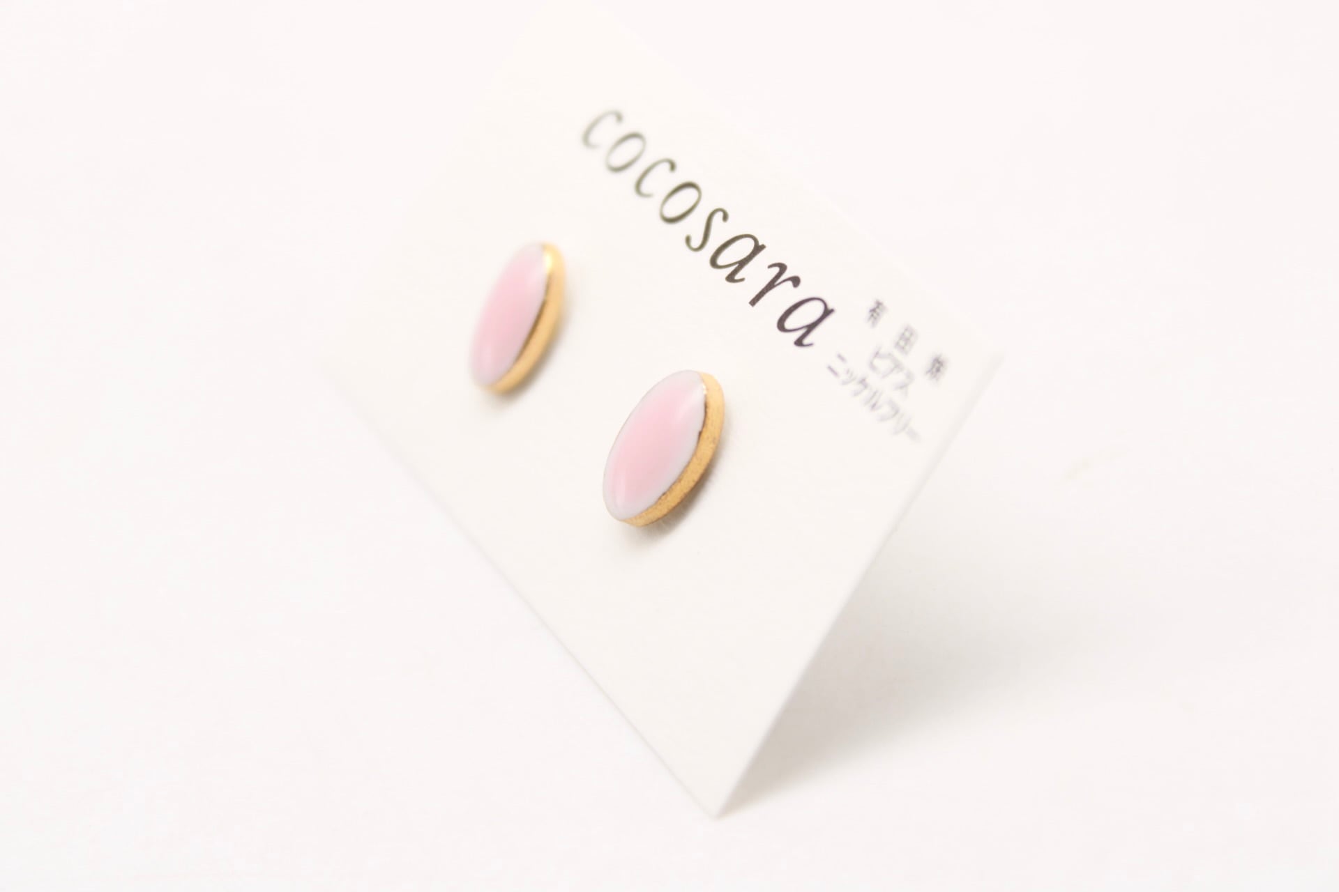 シンプルなデザインが美しい有田焼ピアス、シンプルOval です。楕円形のフォルムが洗練された印象を与えます。シンプルながらも存在感があり、どんなスタイルにも合わせやすく、幅広いシーンで活躍してくれます。