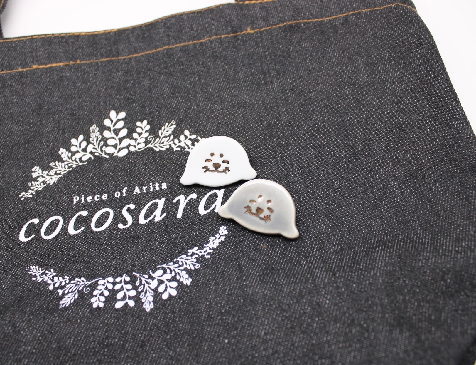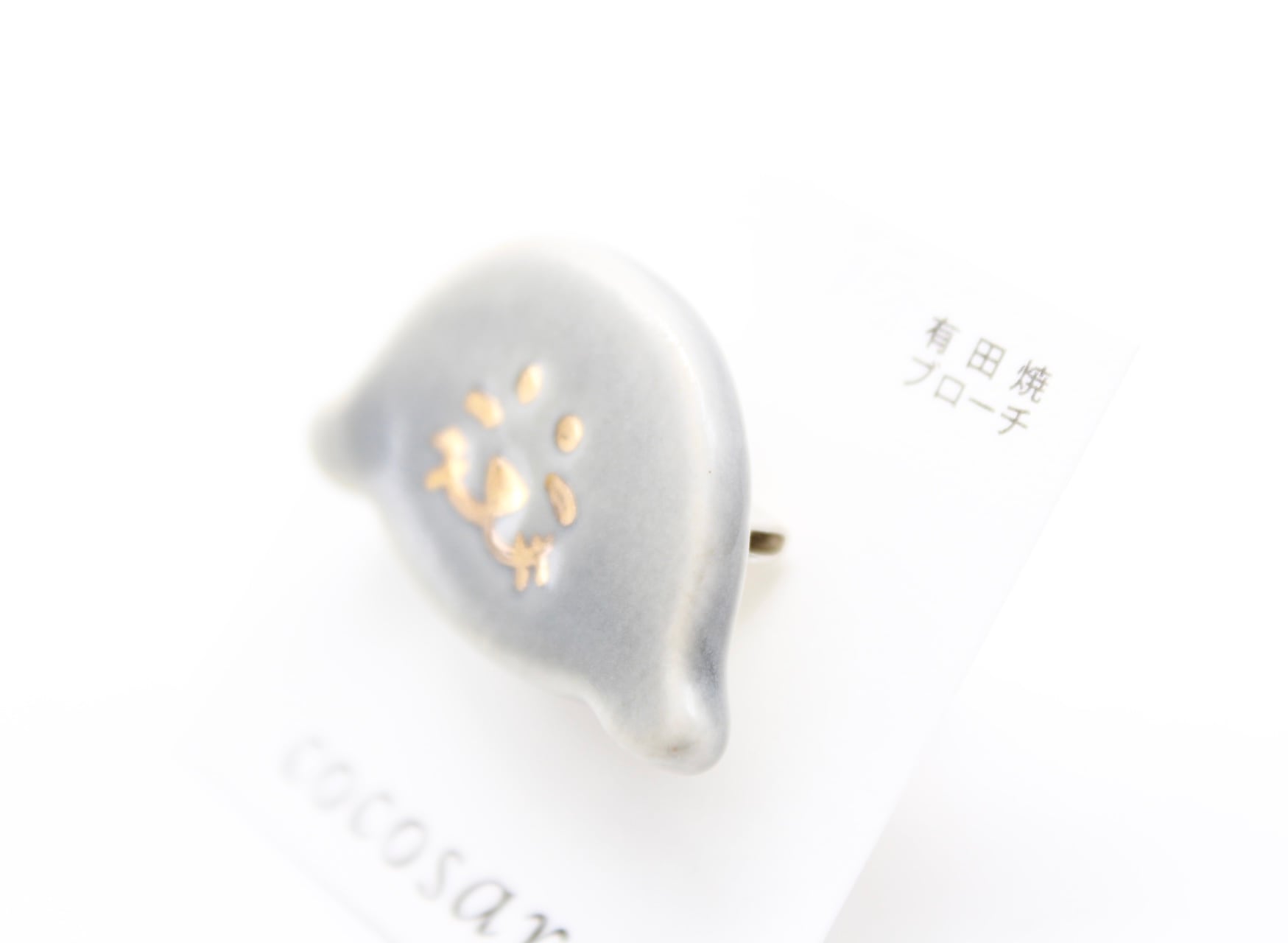有田焼ブローチ アザラシ(グレー×ゴールド)