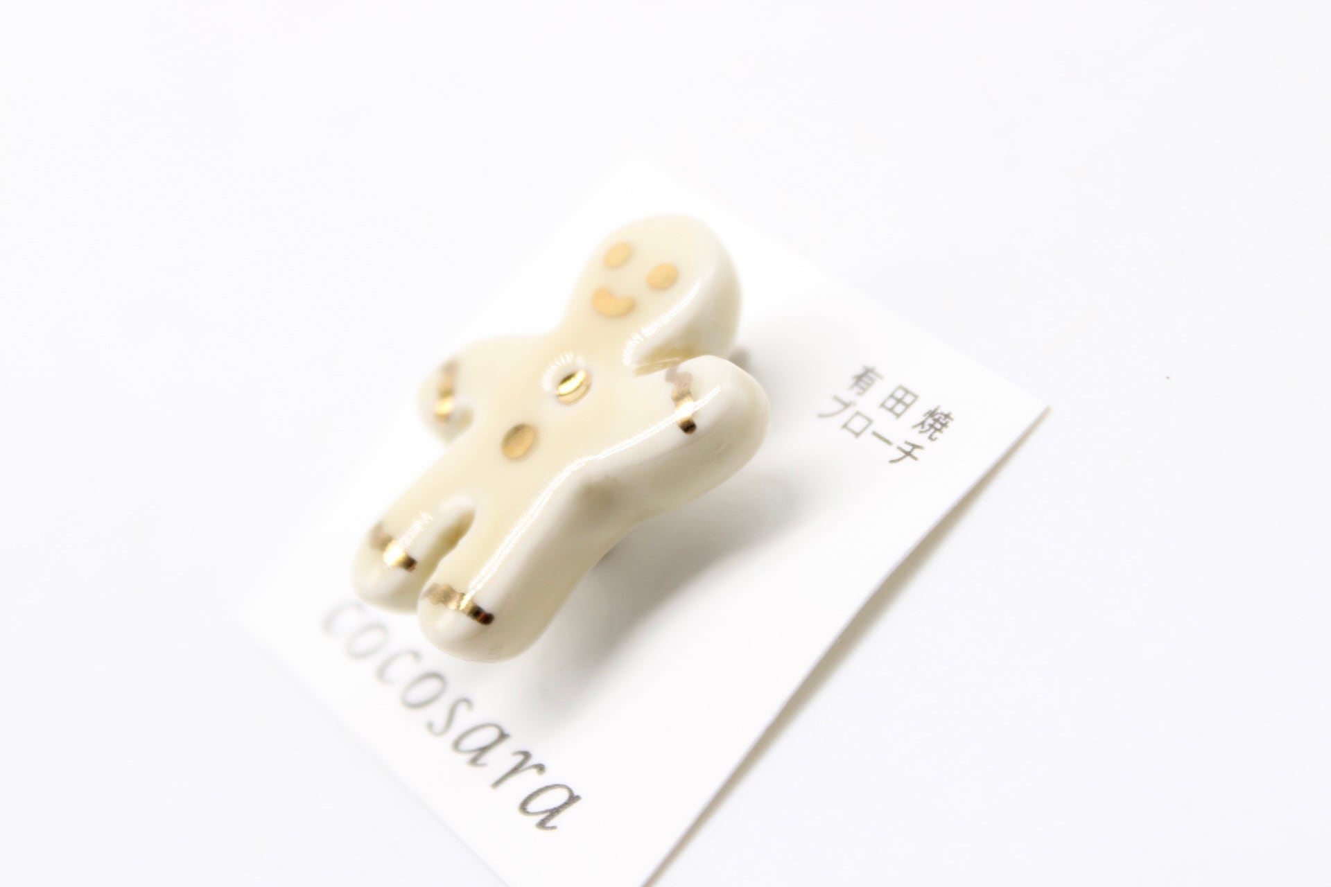 有田焼ブローチ 小さめジンジャーブレッドマン(ベージュ)
