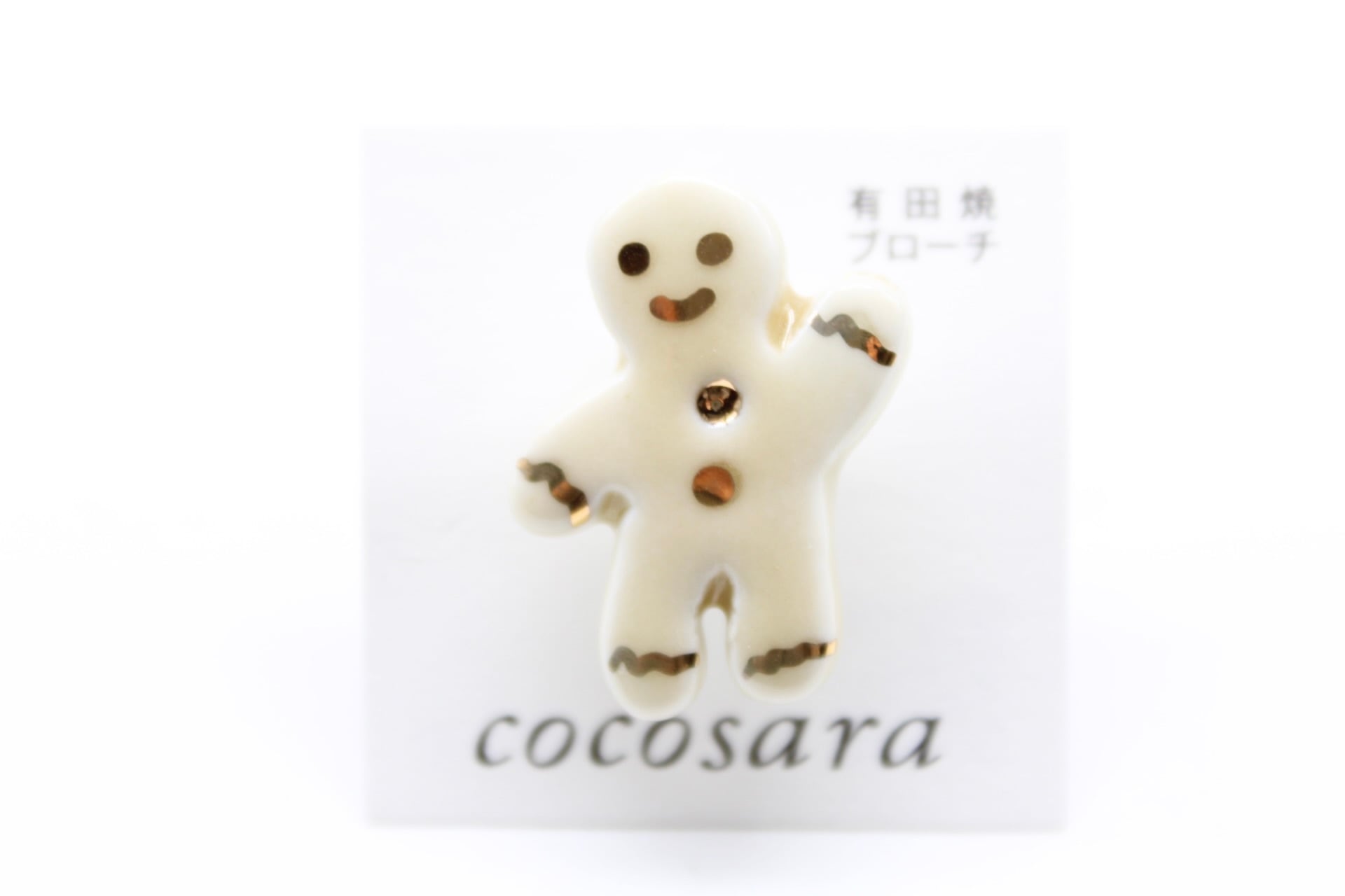 クリスマスのシーズンにぴったりの有田焼ブローチ ジンジャーブレッドマンです。有田焼の技術を活かし、細部までこだわったデザインが特徴です。可愛らしいジンジャーブレッドマンの形状や、色合いがユニークで、お洋服やバッグなどのアクセントにピッタリ。存在感のある存在でありながら、どんなスタイルにも合わせやすいです。
