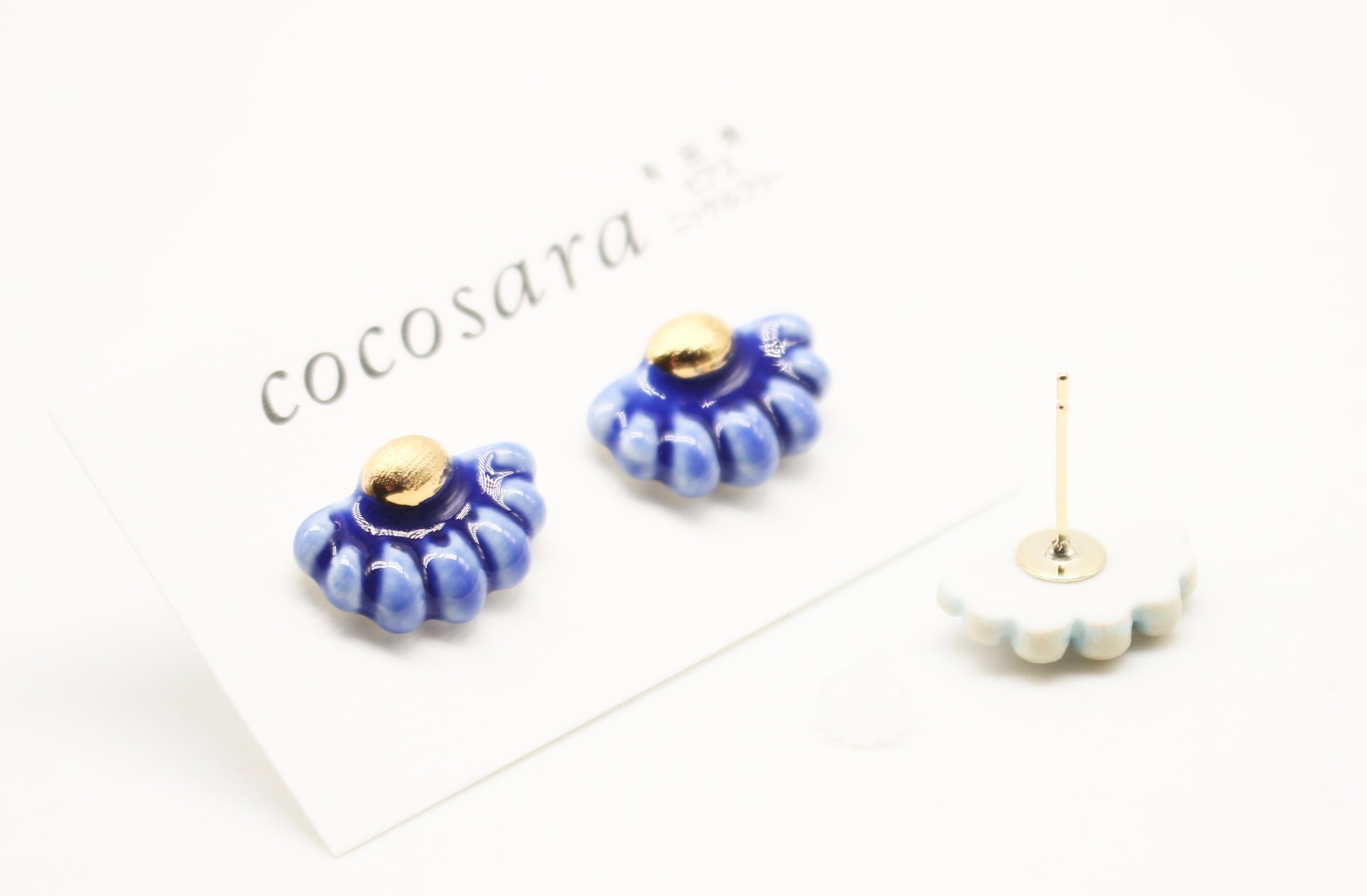 有田焼ピアス 扇形ブルー