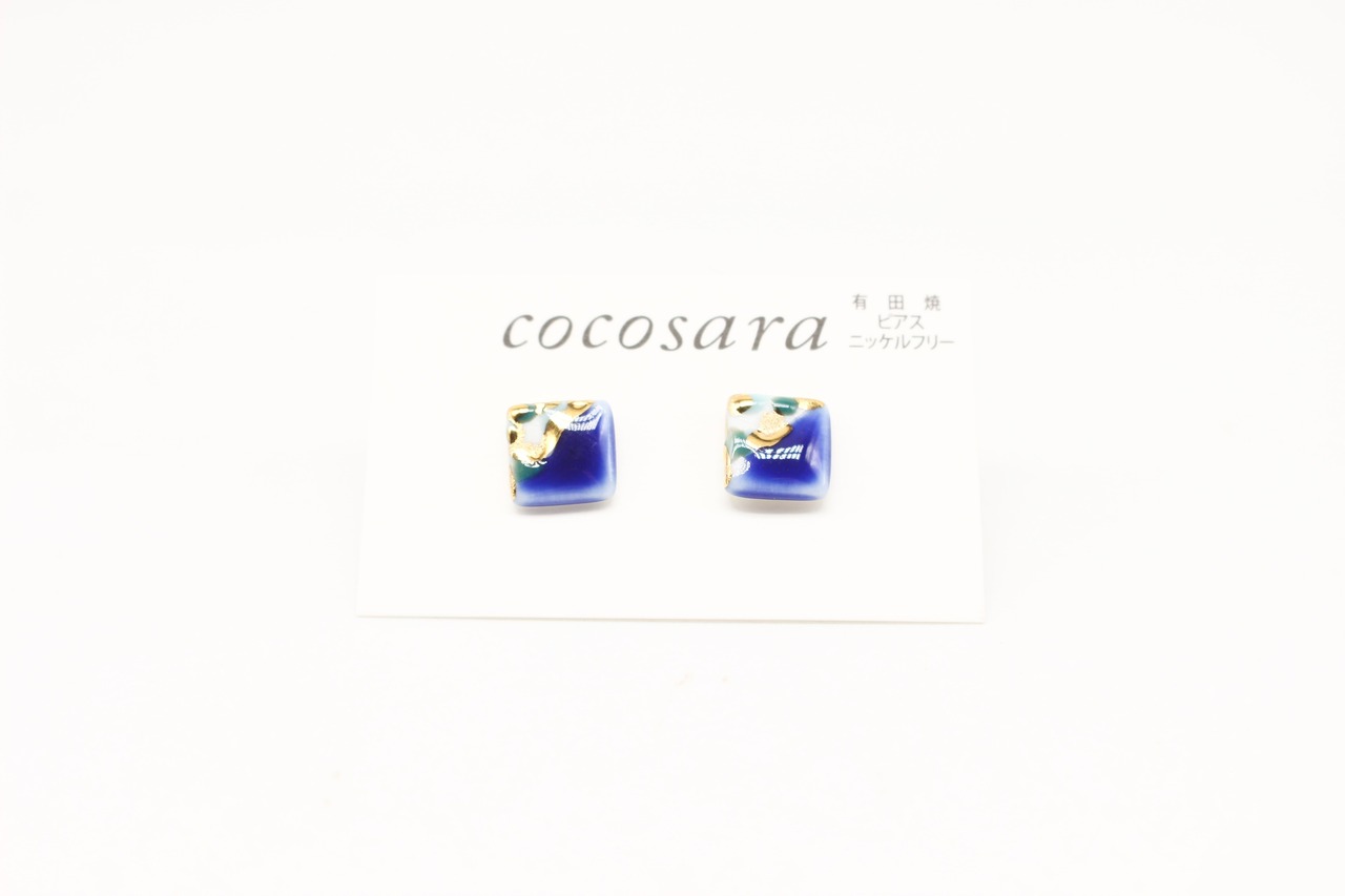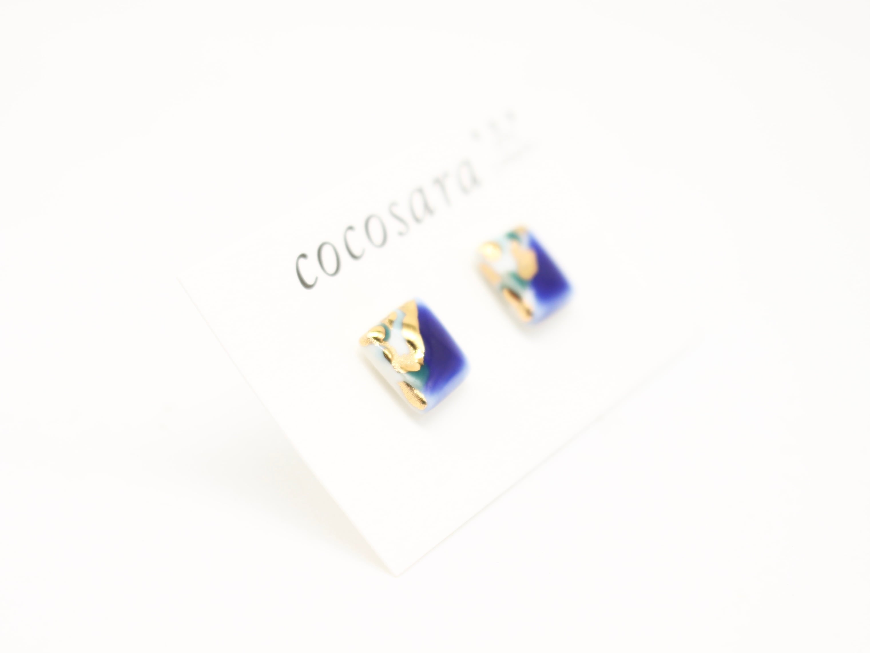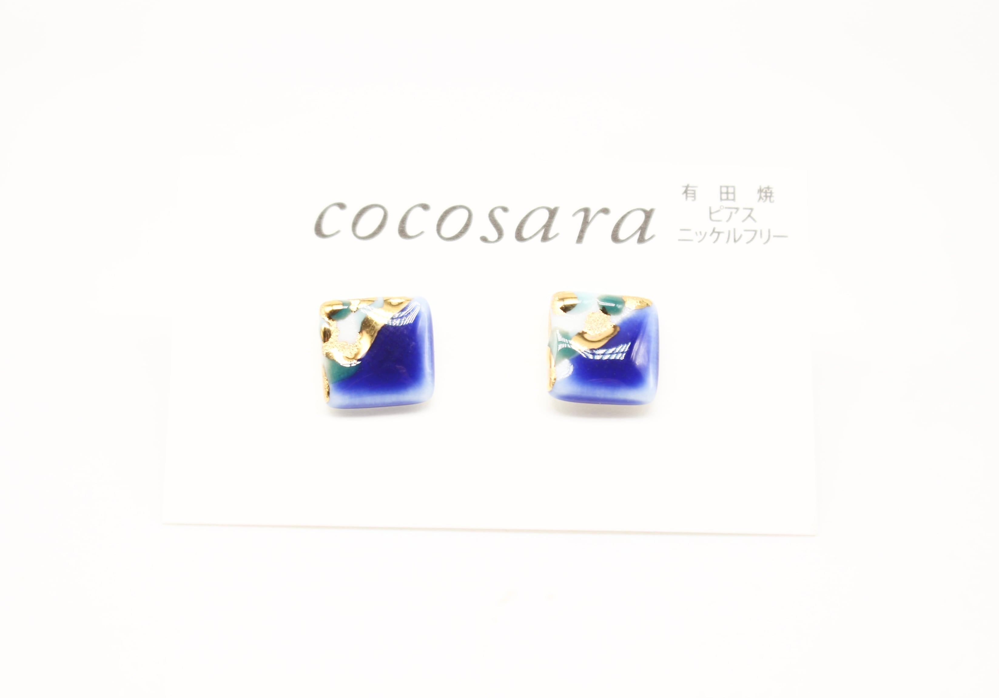 シンプルで美しい有田焼ピアス です。正方形のデザインがスタイリッシュで大人っぽい印象を与えます。特徴的な有田焼の風合いや色味を活かしたデザインなので、シンプルながらも存在感があります。一つ一つ手作業で丁寧に作られており、職人の技が光る逸品です。