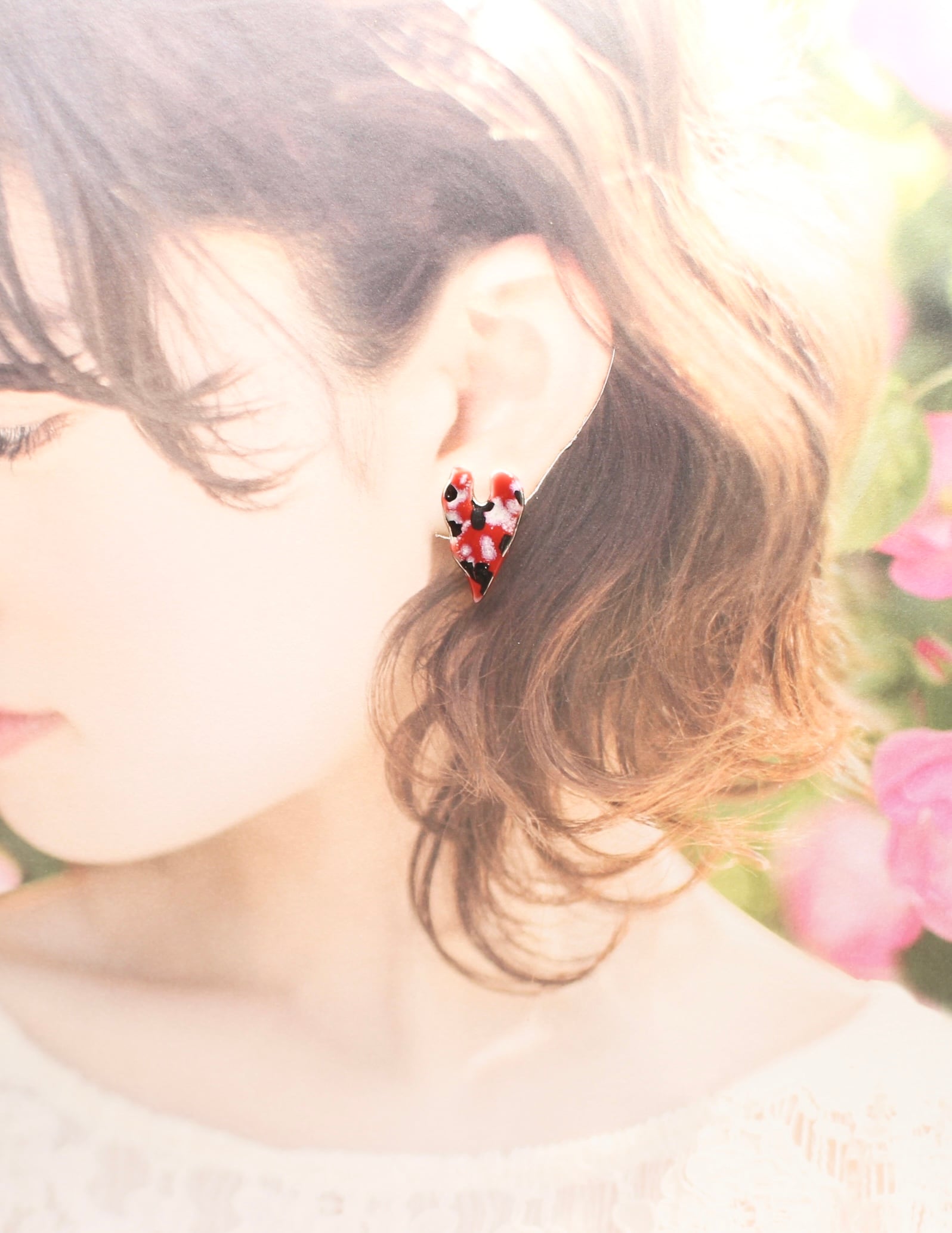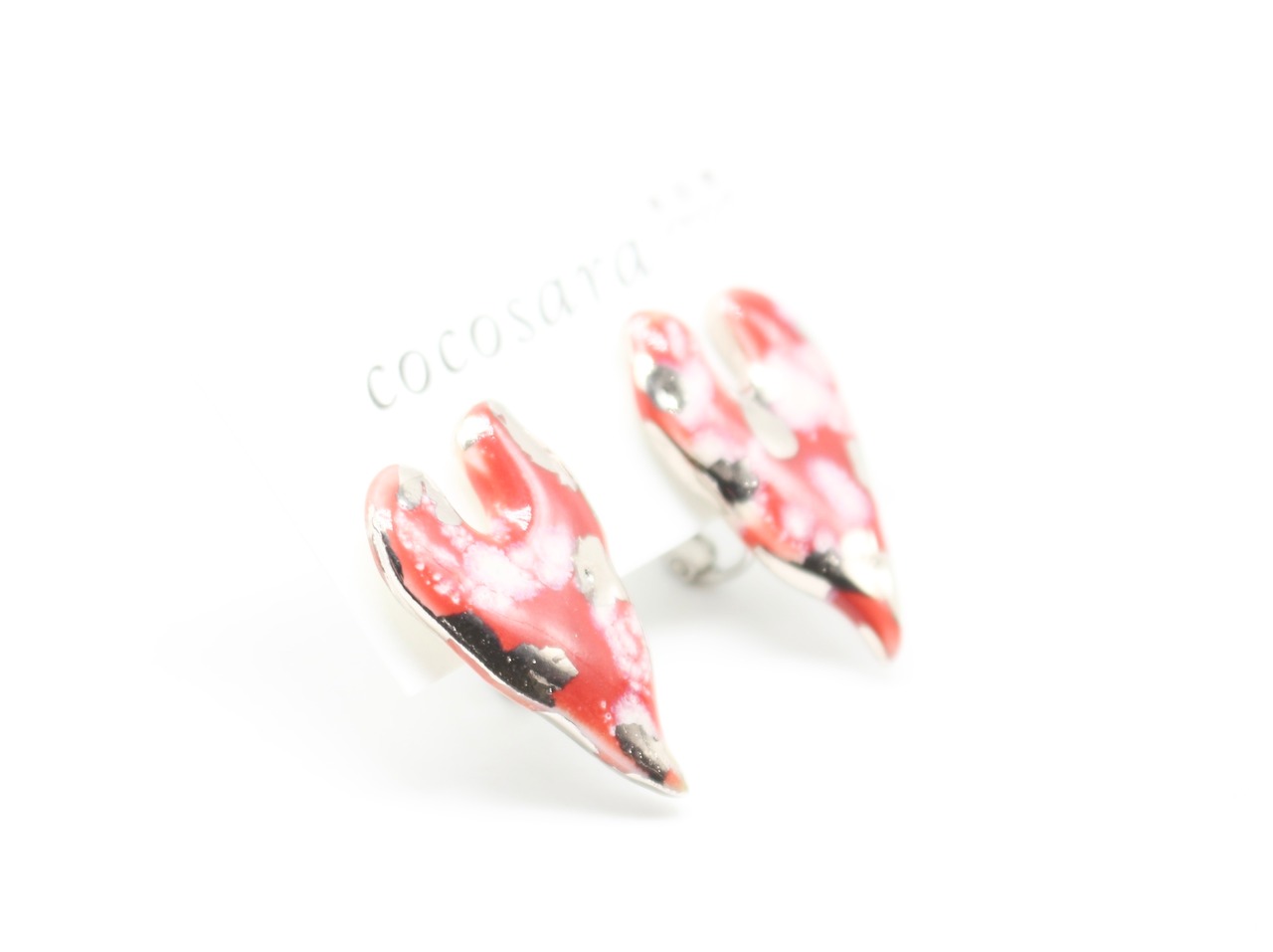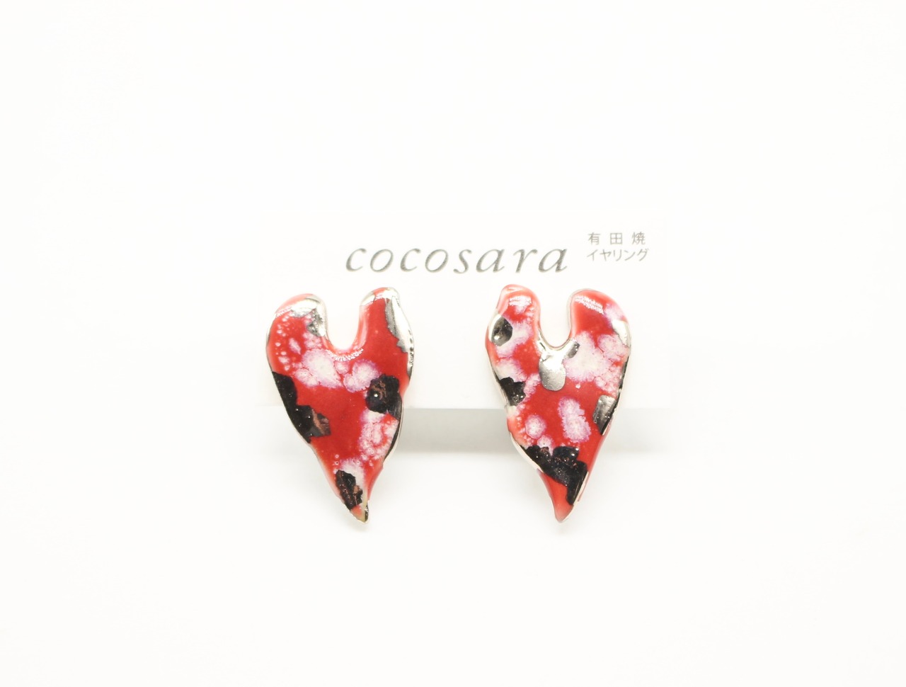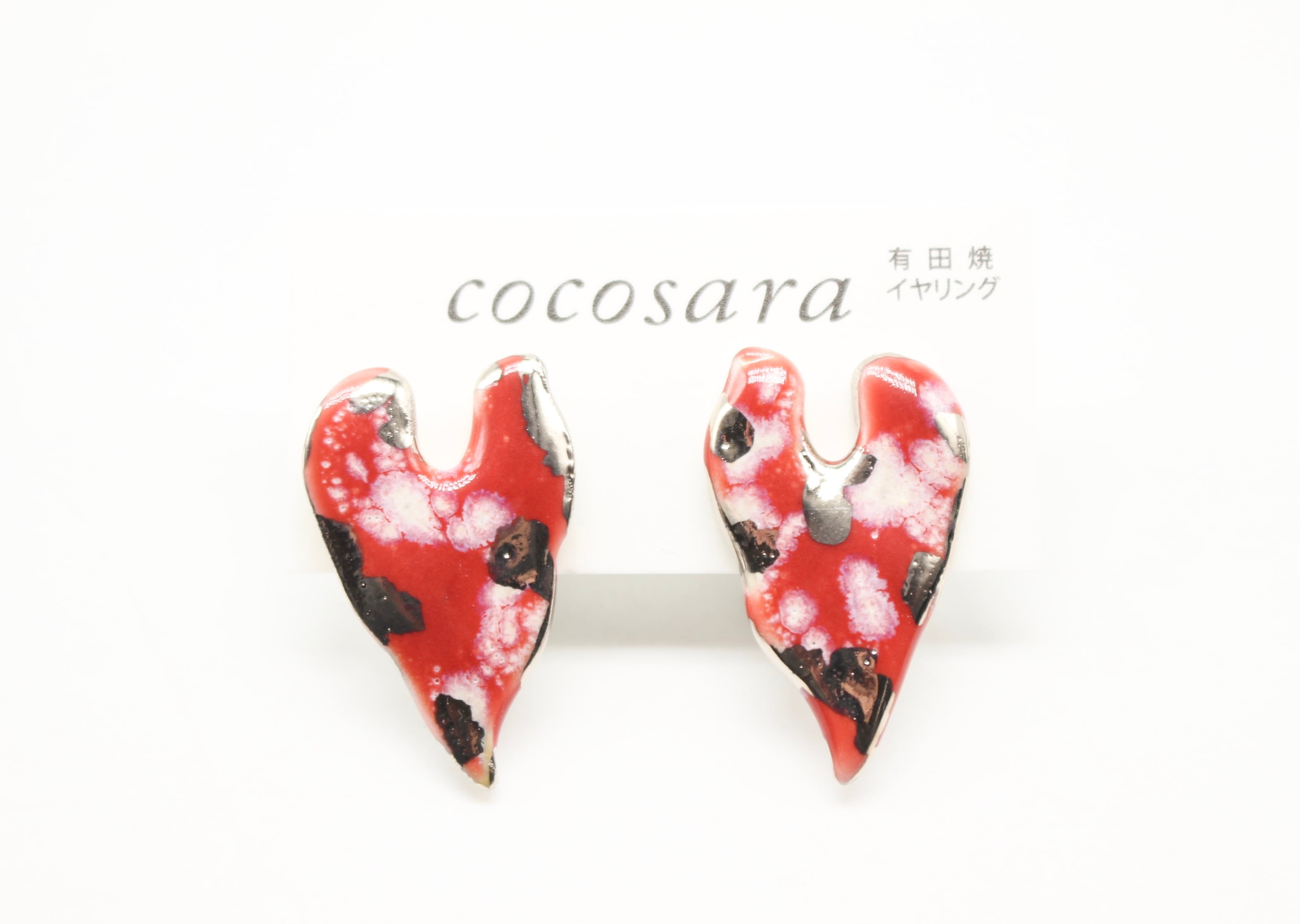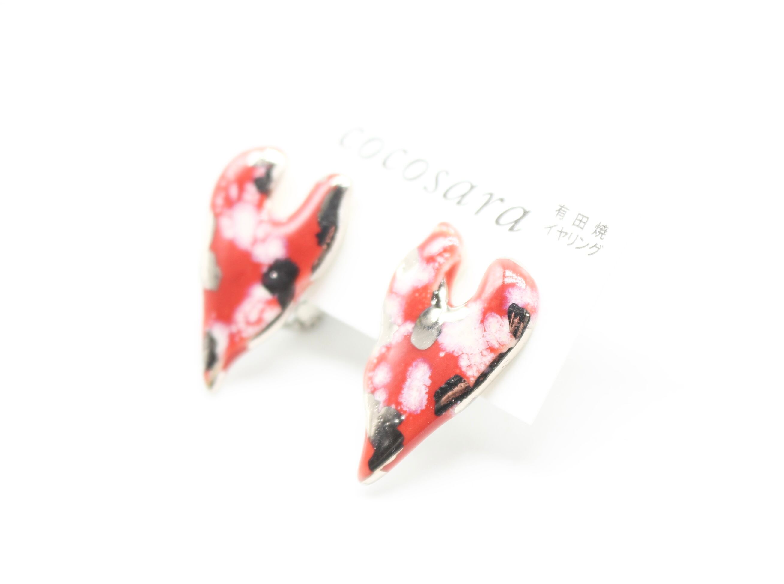 有田焼 イヤリング レッドカモフラハート