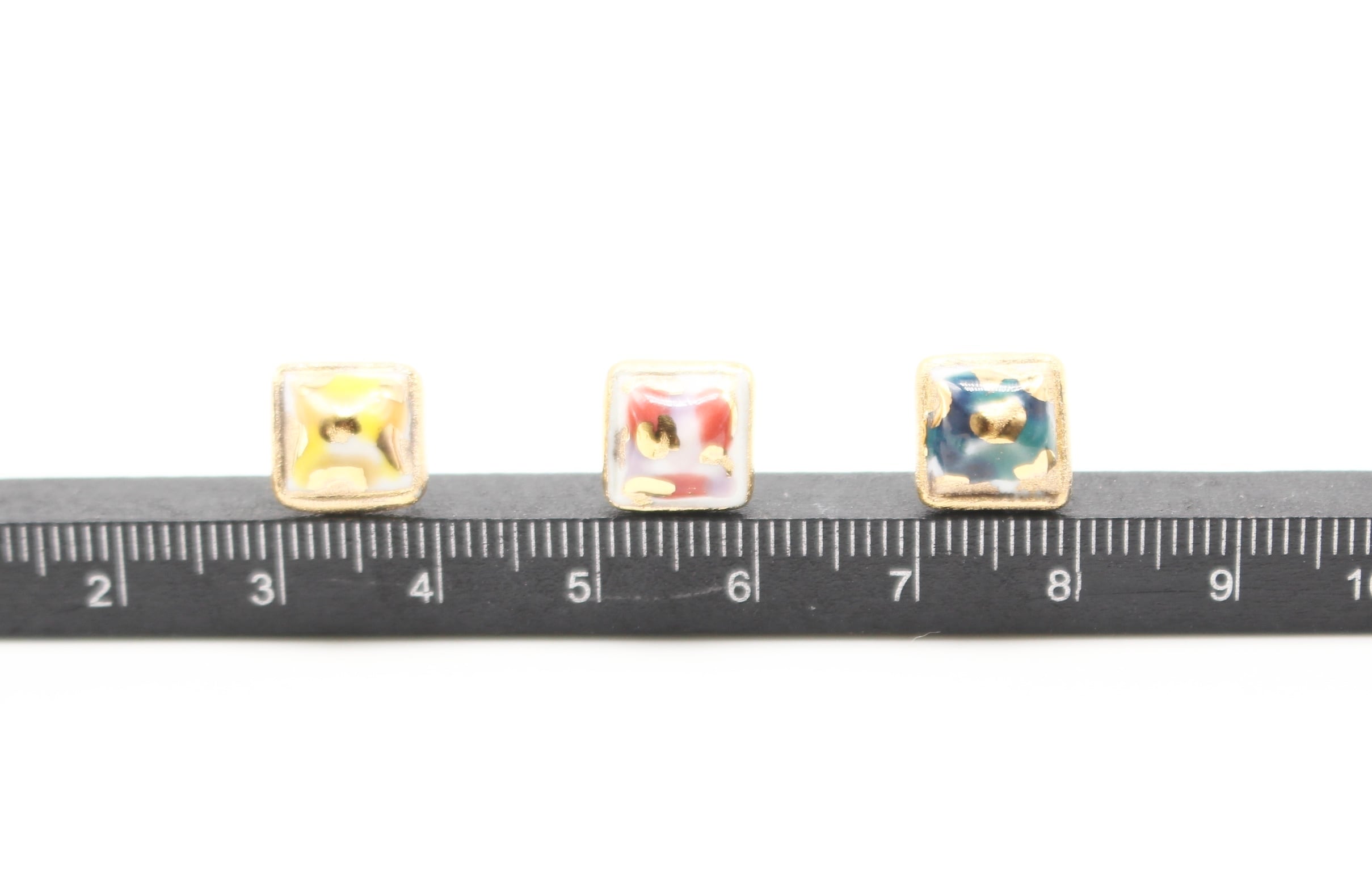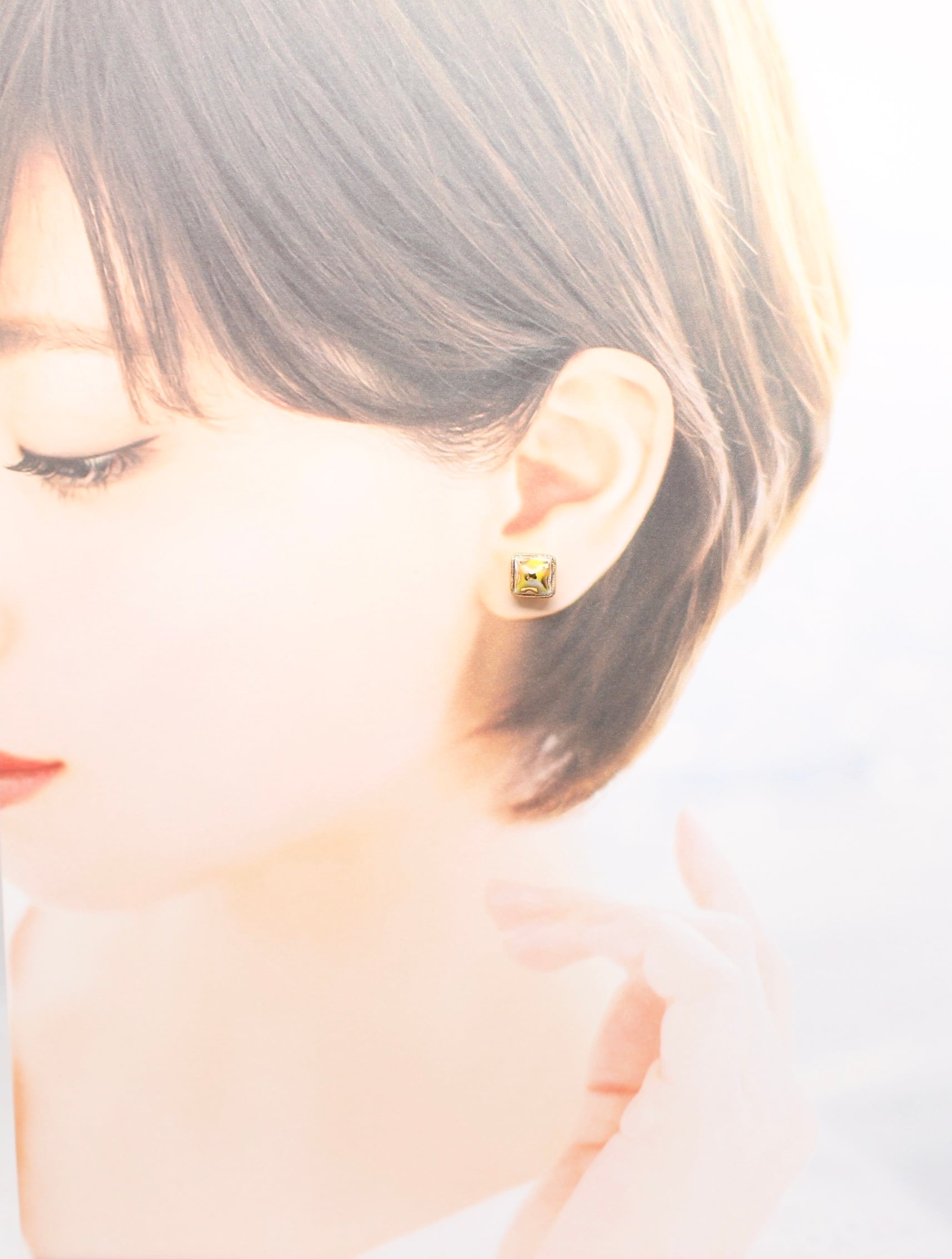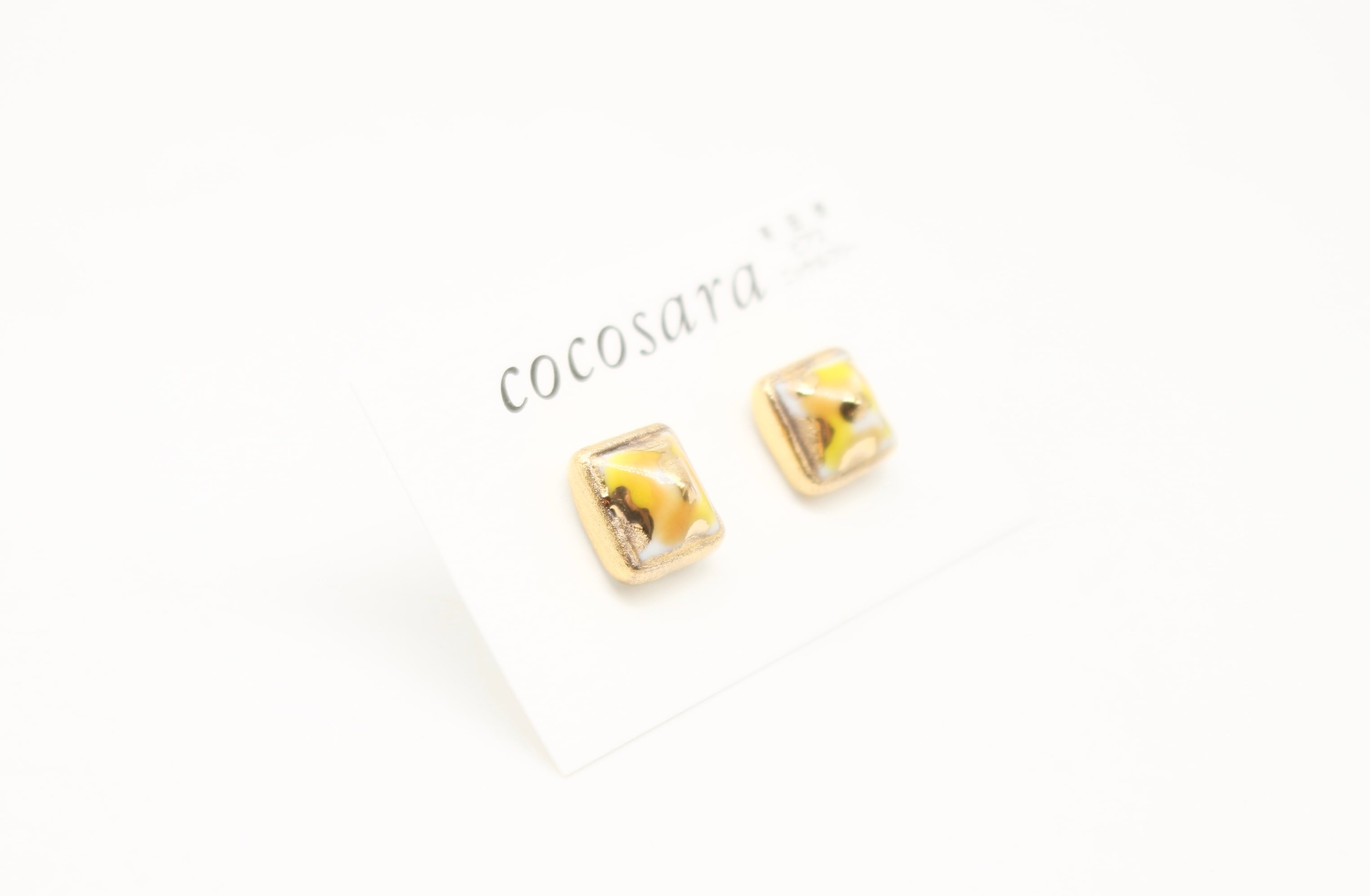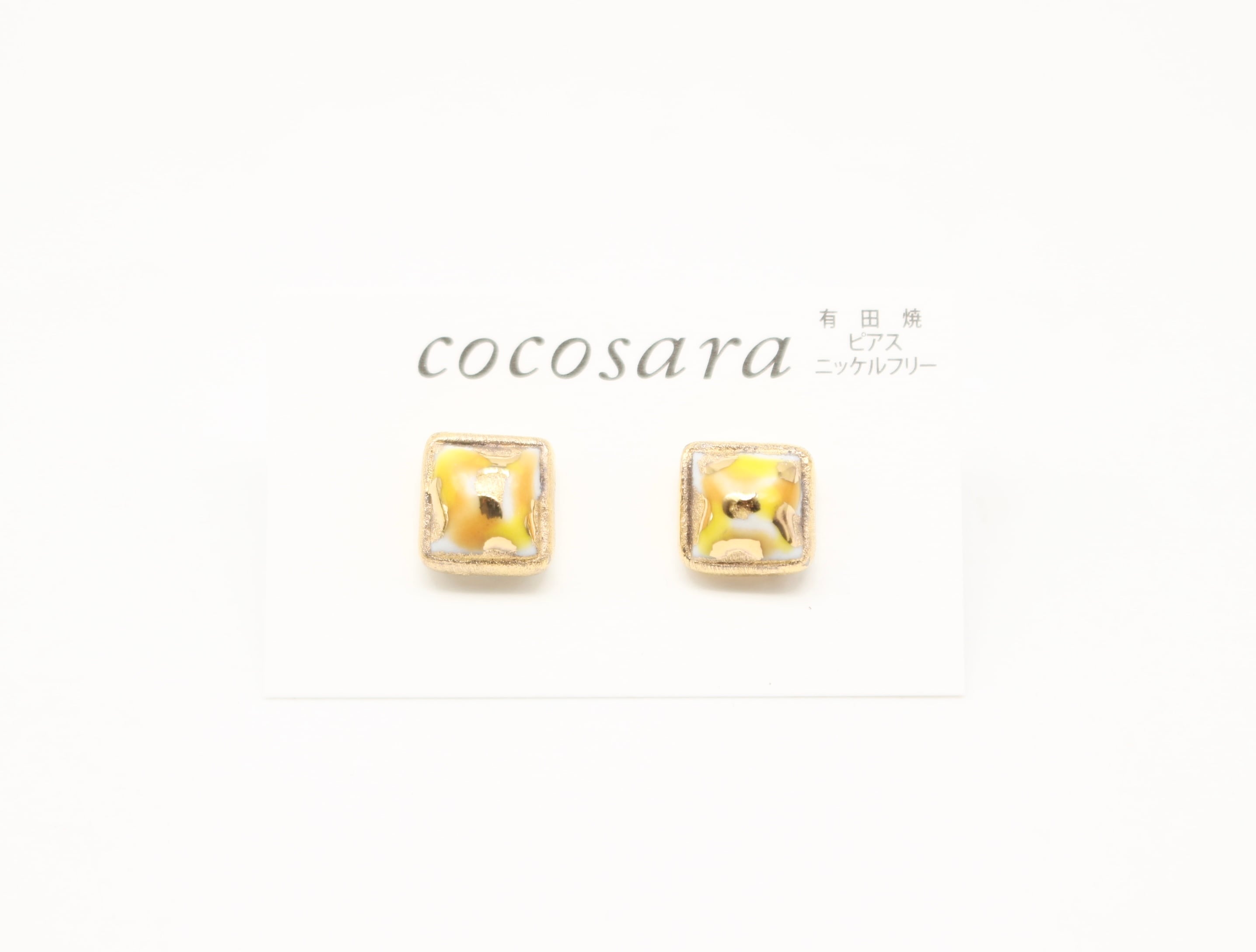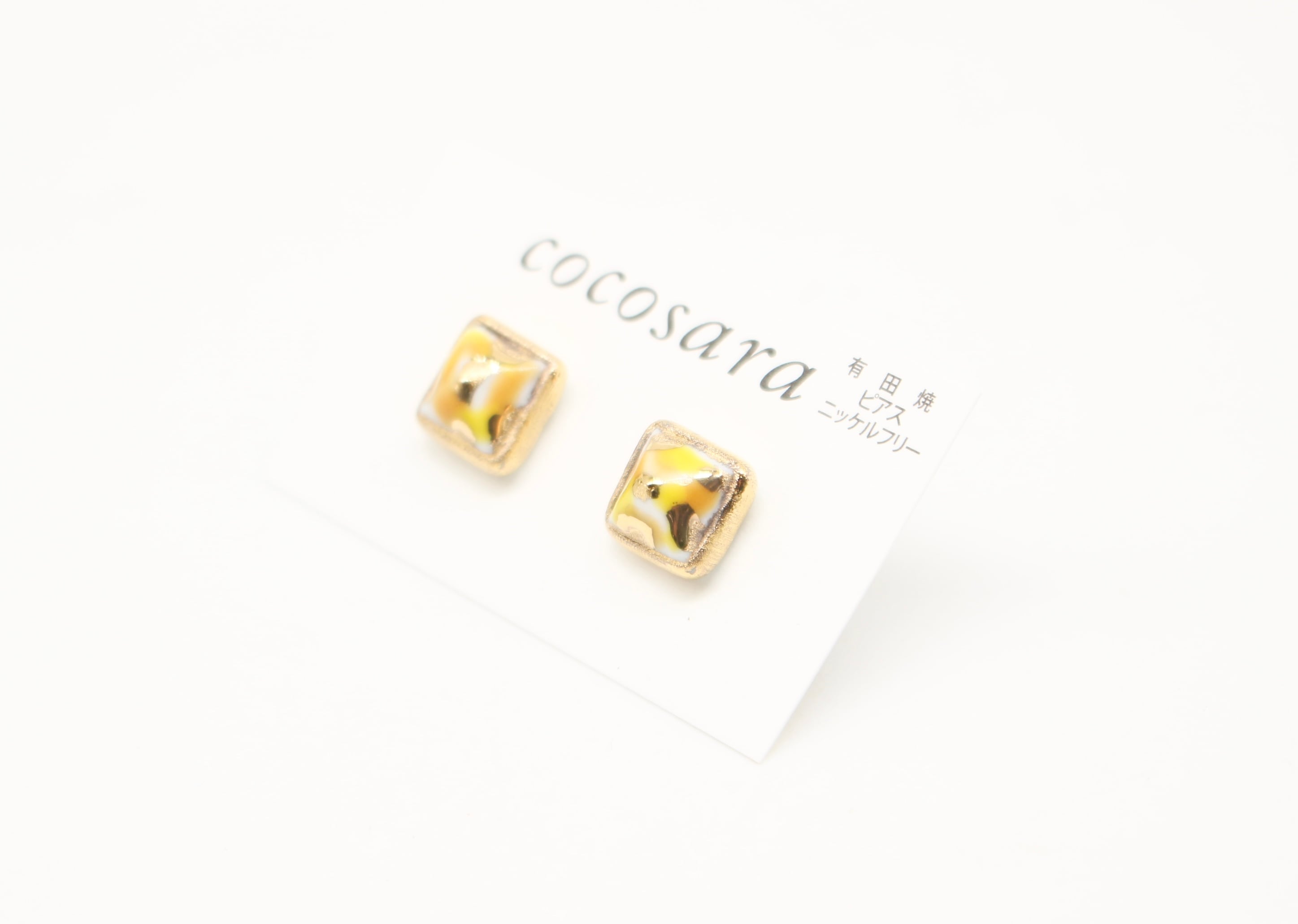 有田焼ピアス スクエア カモフラ黄色