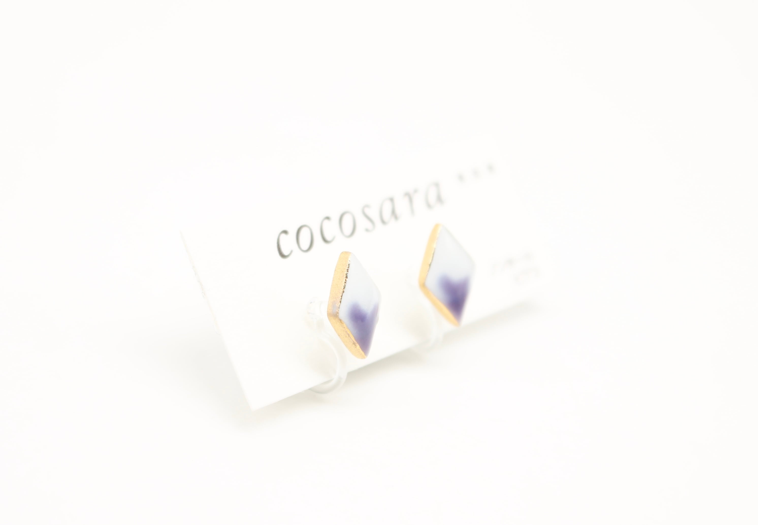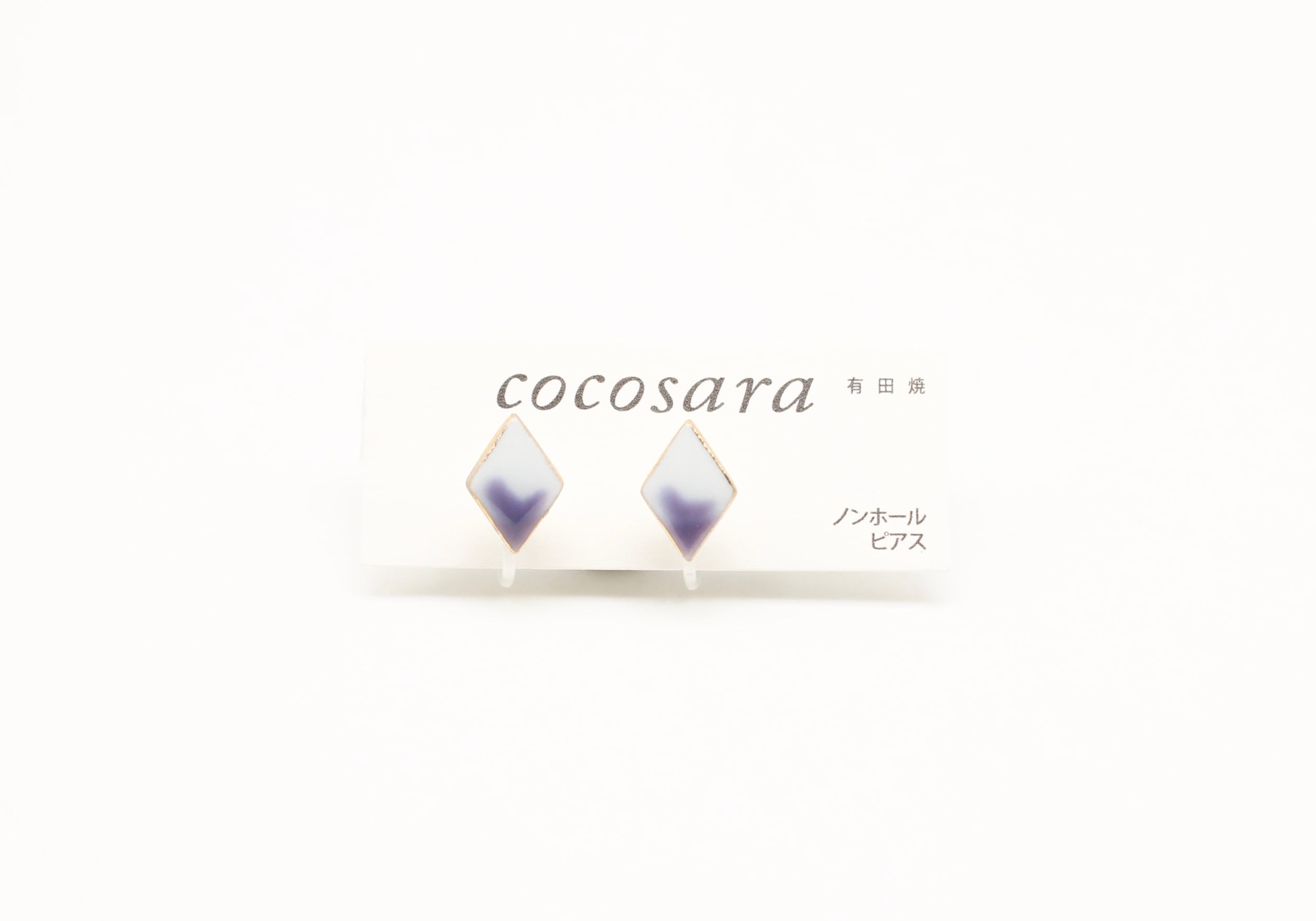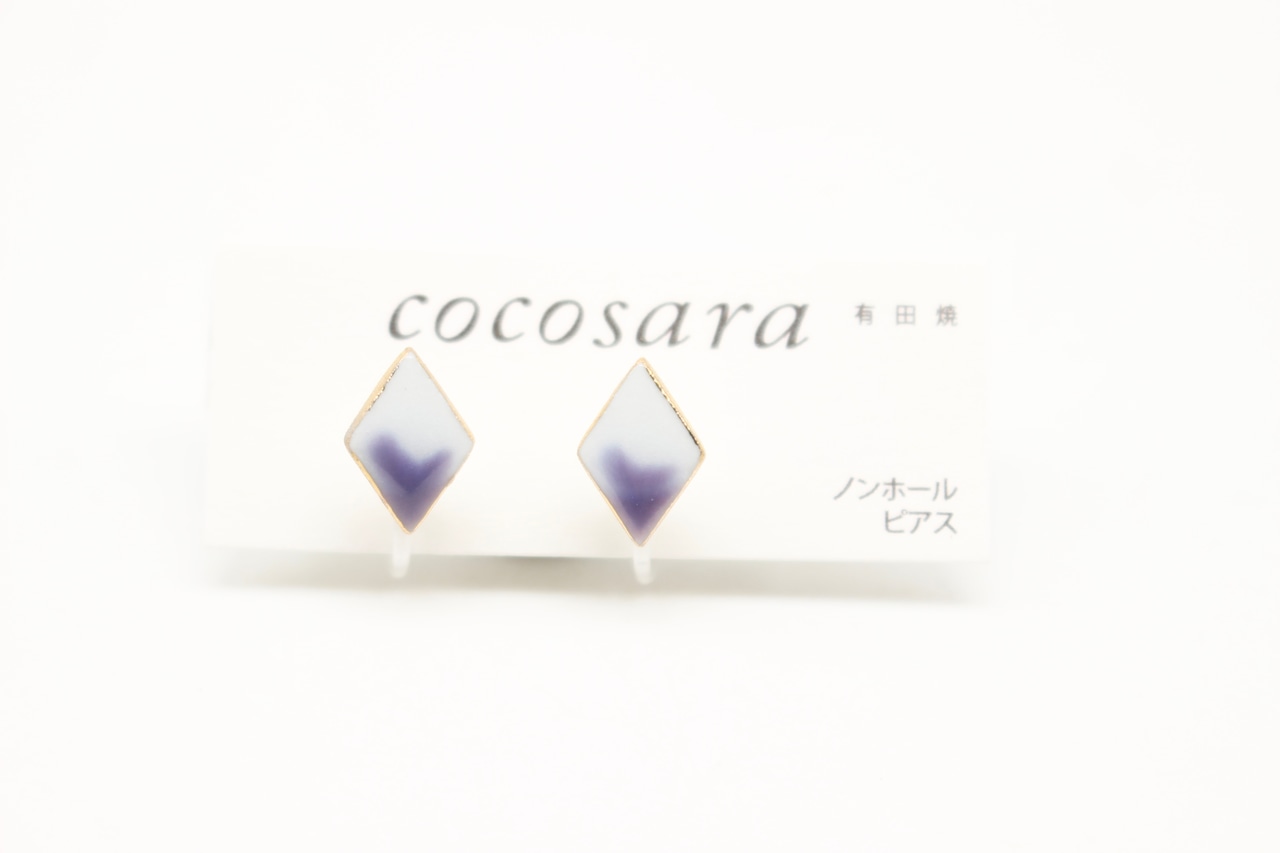 有田焼ノンホールピアス 2トーン紫ダイヤ