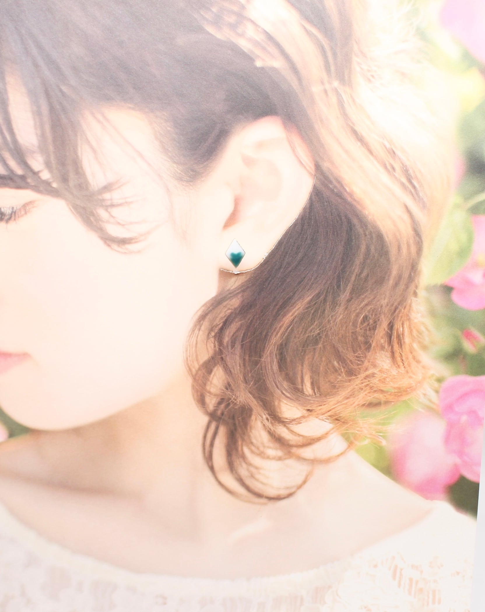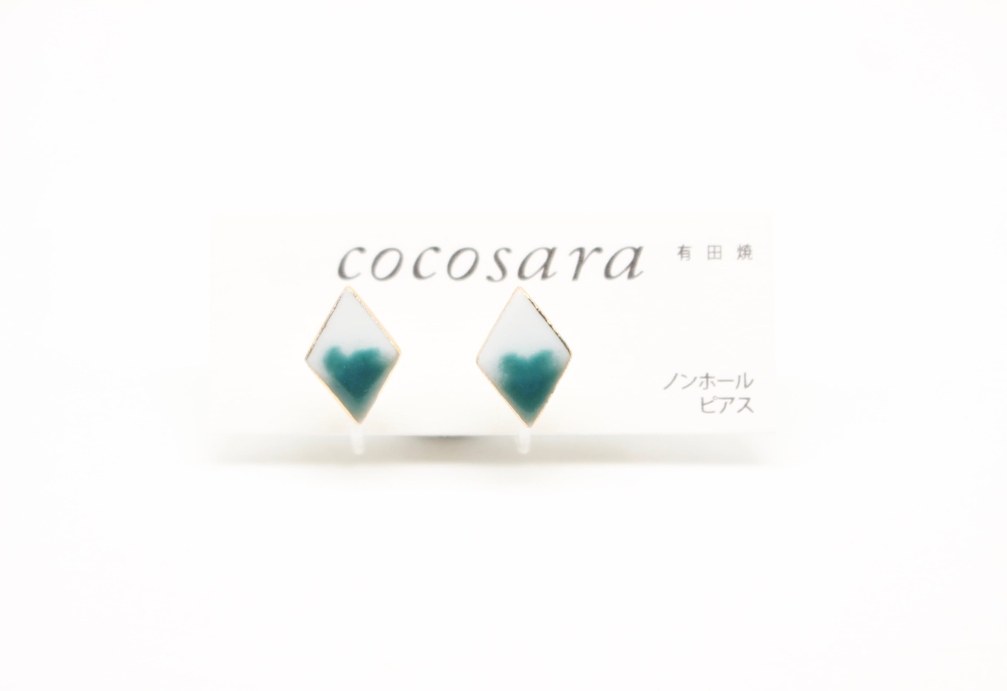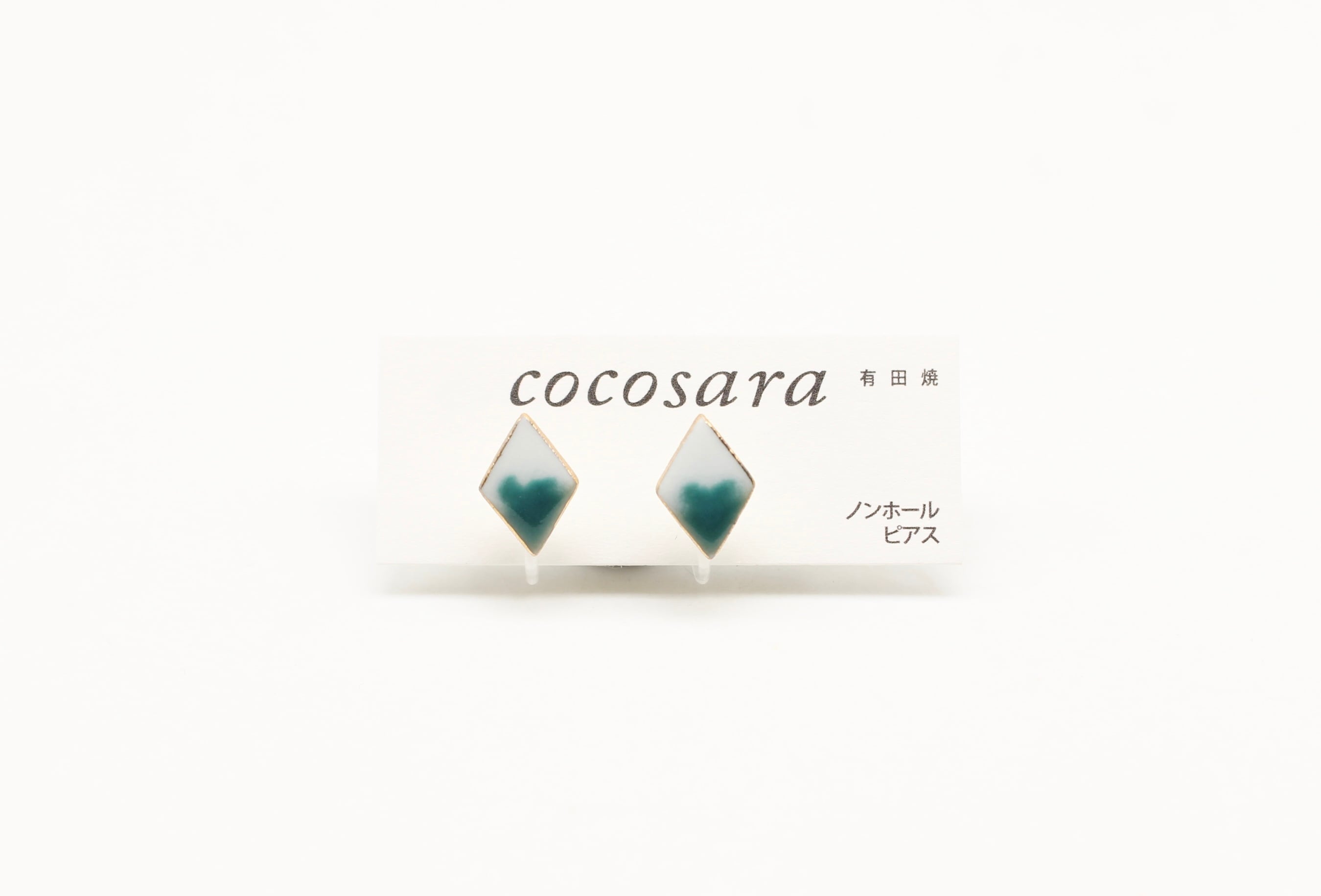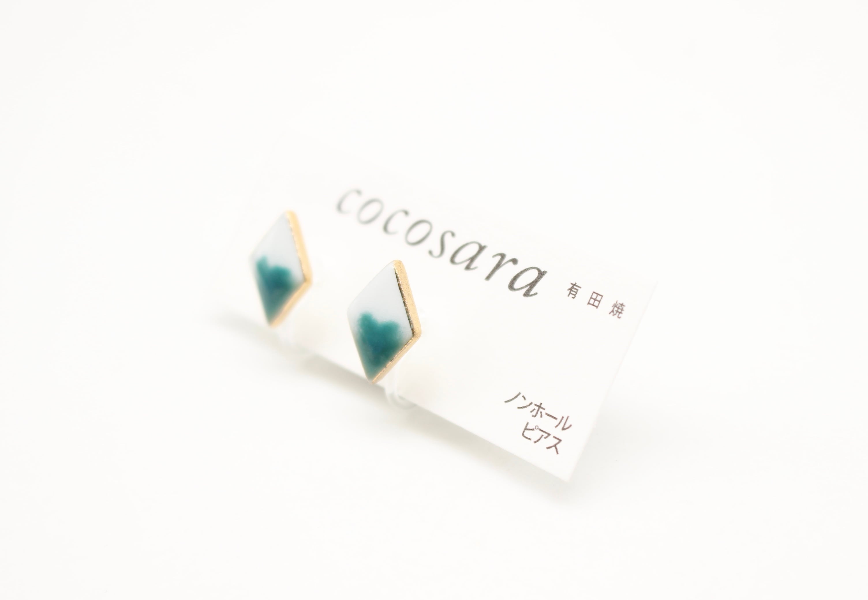 有田焼ノンホールピアス 2トーン緑ダイヤ