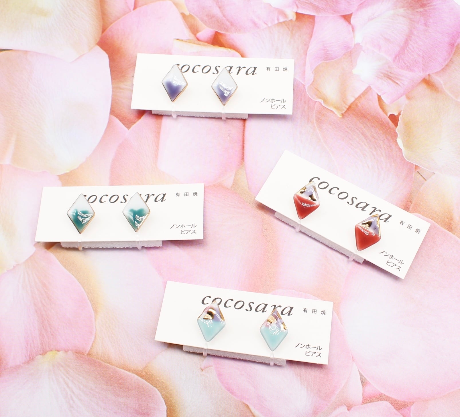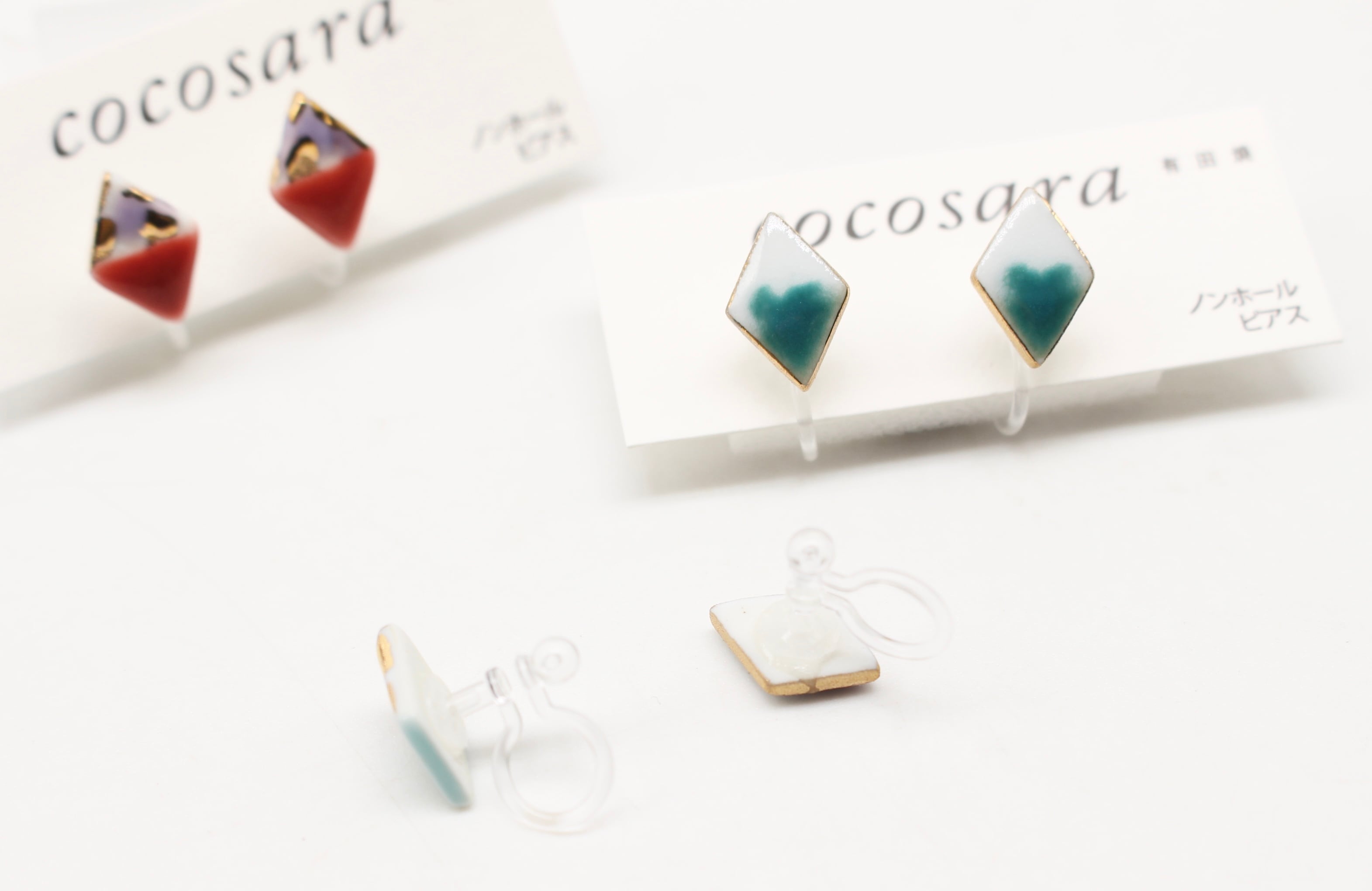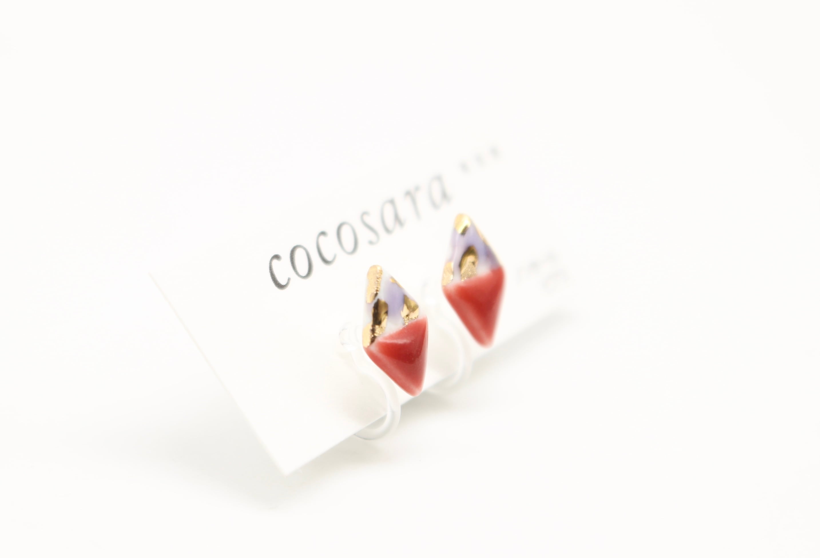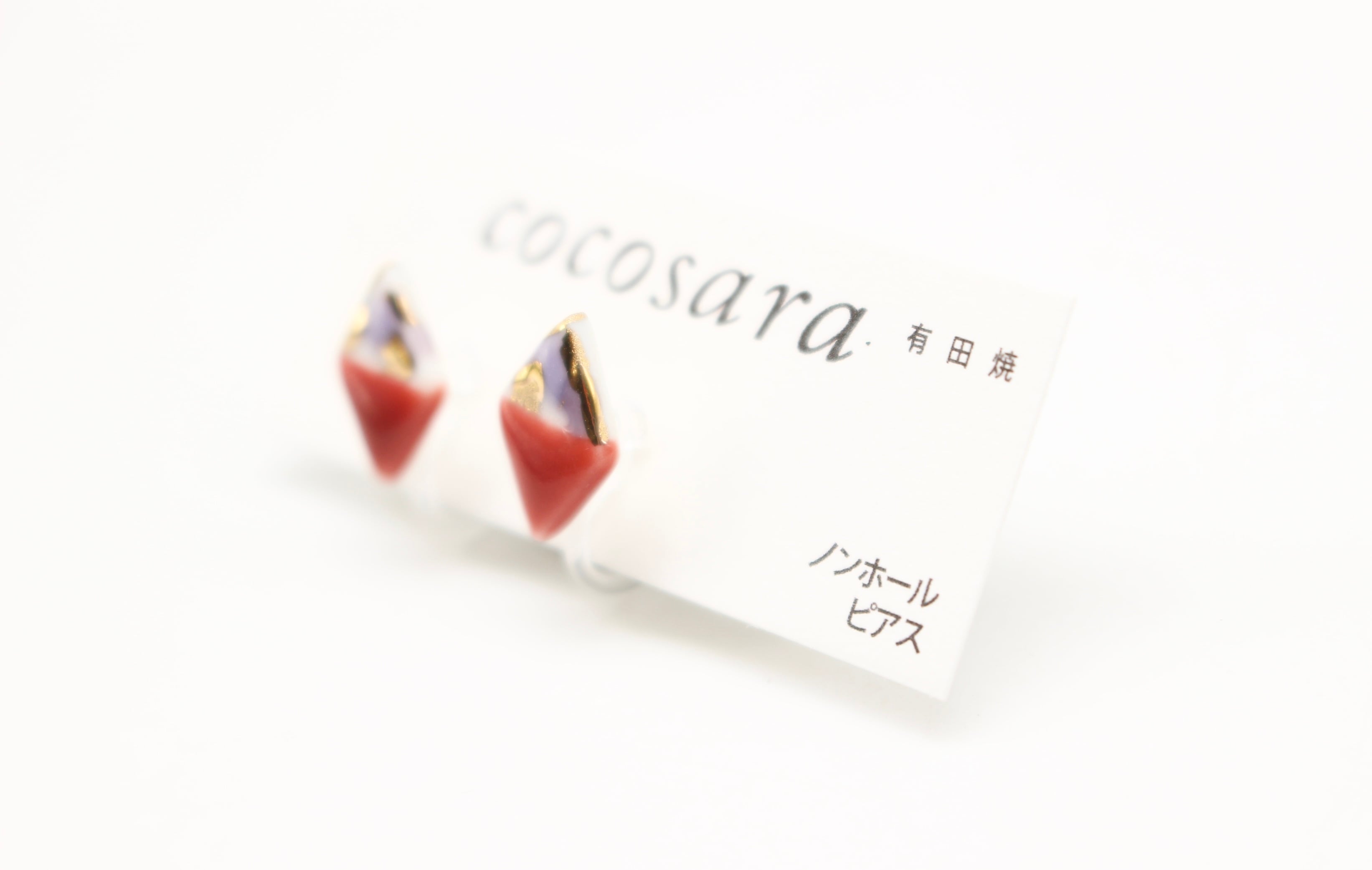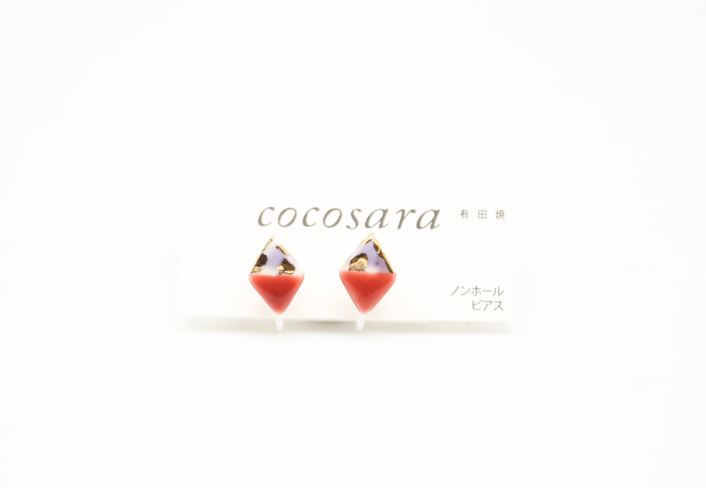 有田焼ノンホールピアス 2トーンカモフラ赤ダイヤ