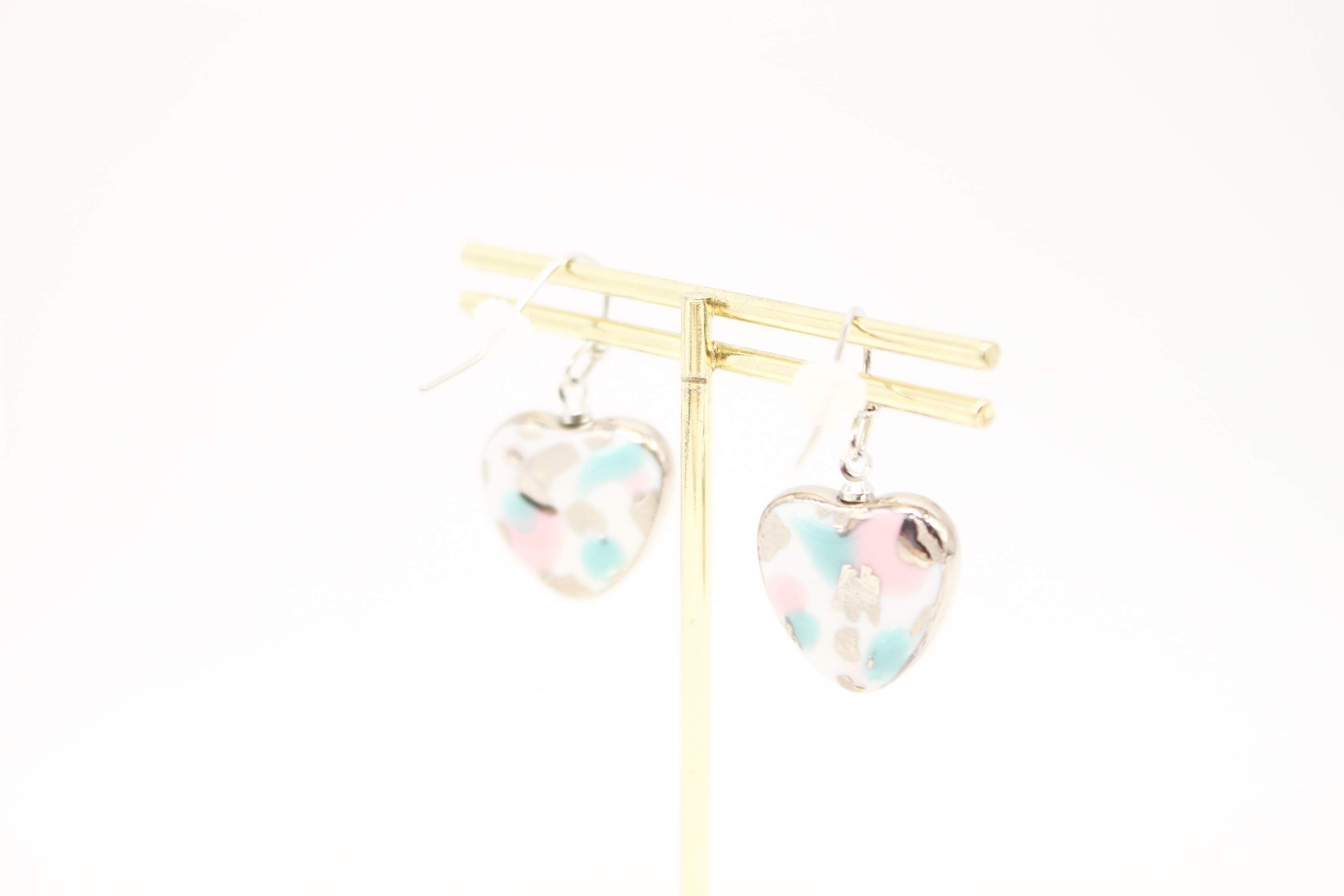 有田焼ゆれるピアス ハート ピンク×カモフラージュ