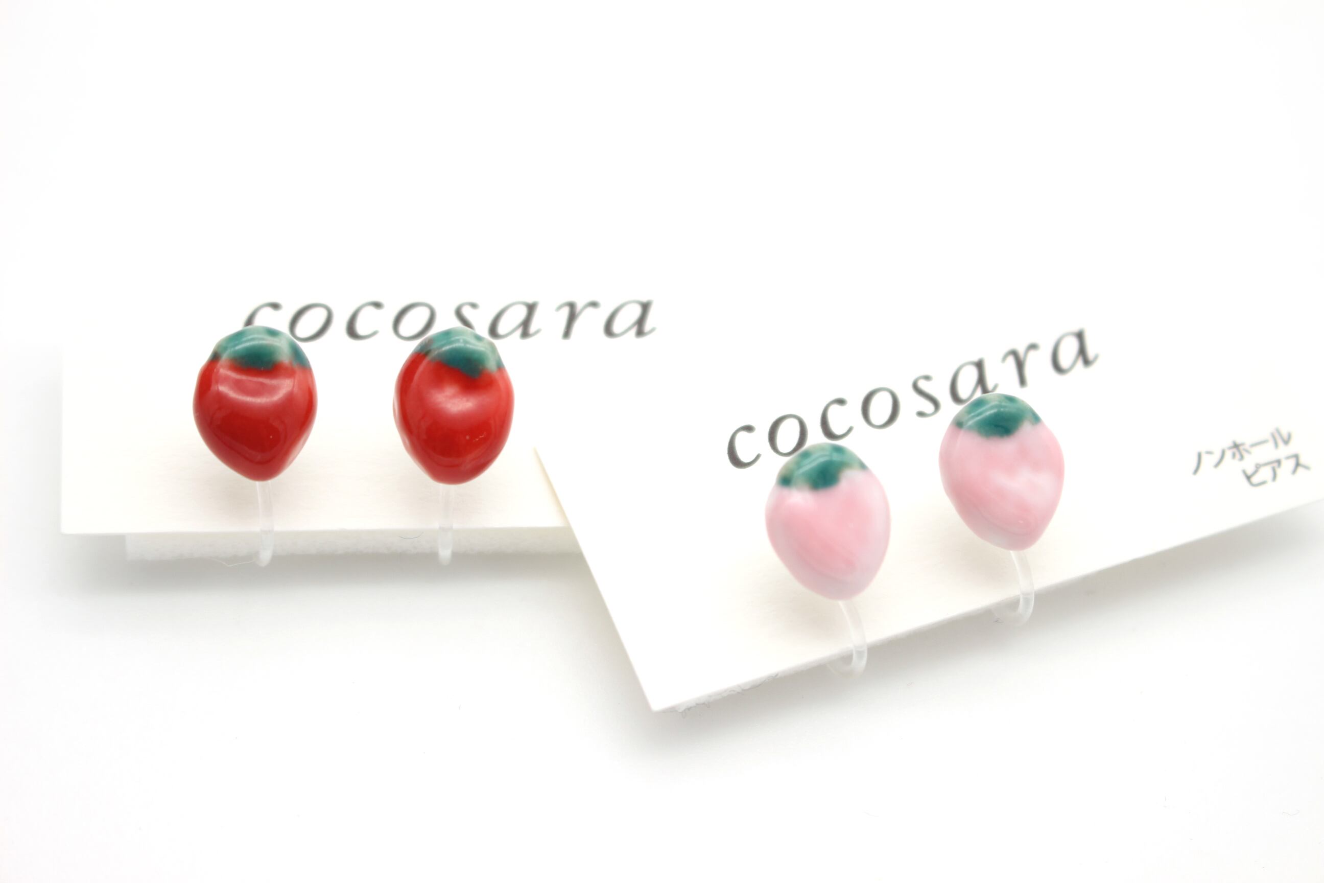 有田焼ノンホールピアス イチゴ (S)(ピンク)