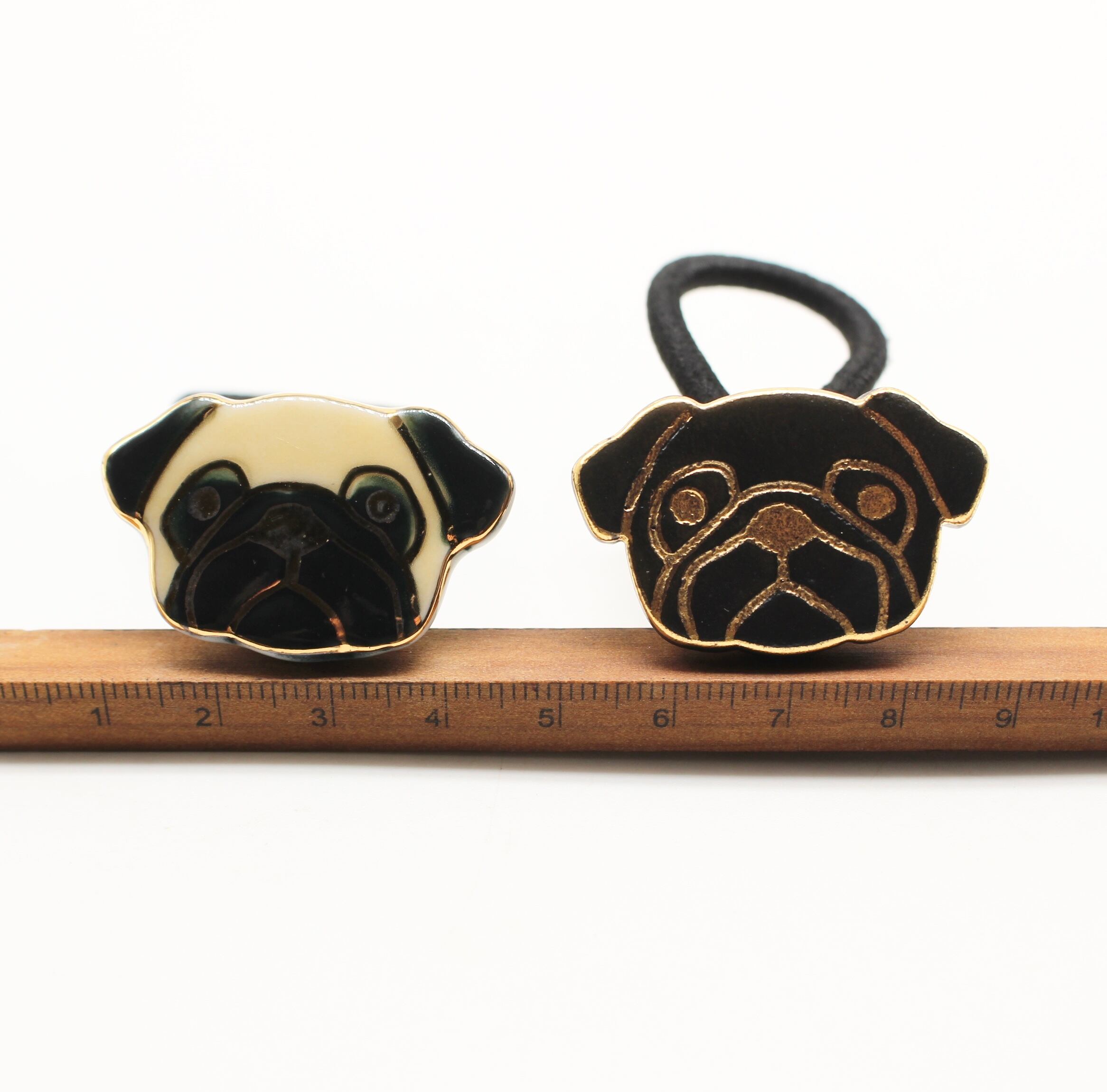 有田焼ヘアゴム パグ(マットブラック×ゴールド)