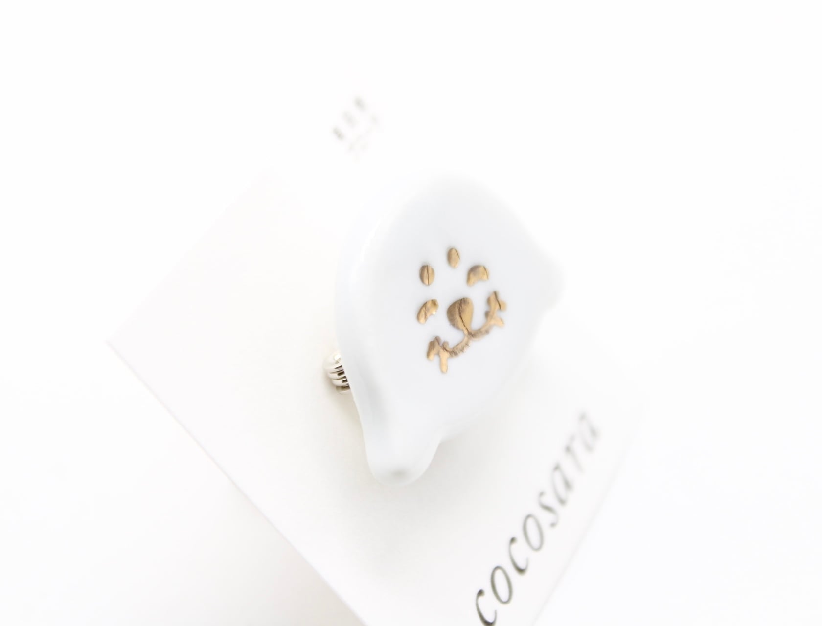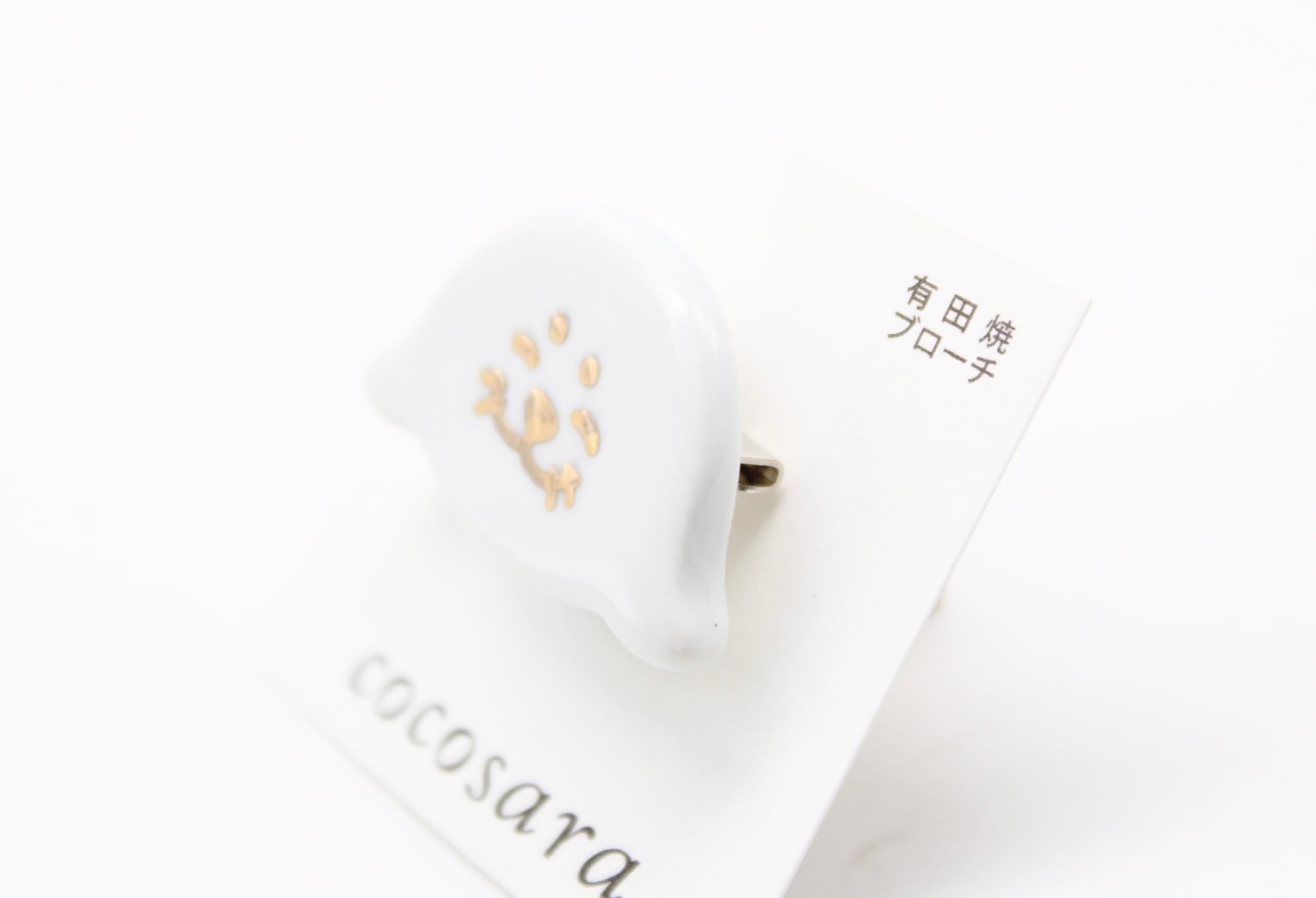 有田焼ブローチ アザラシ(ホワイト×ゴールド)