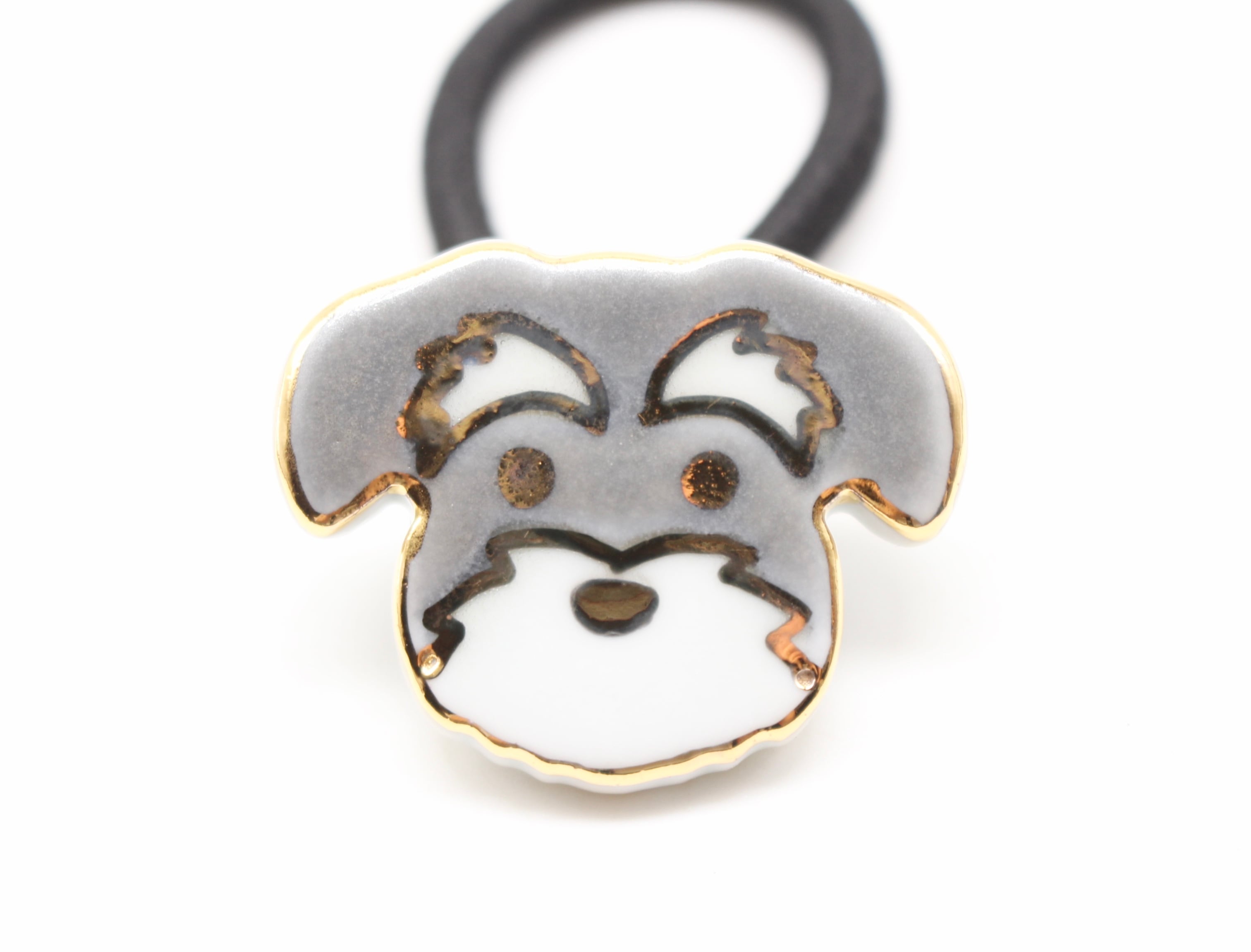 有田焼ヘアゴム シュナウザー(ライトグレー×ホワイト×ゴールド)