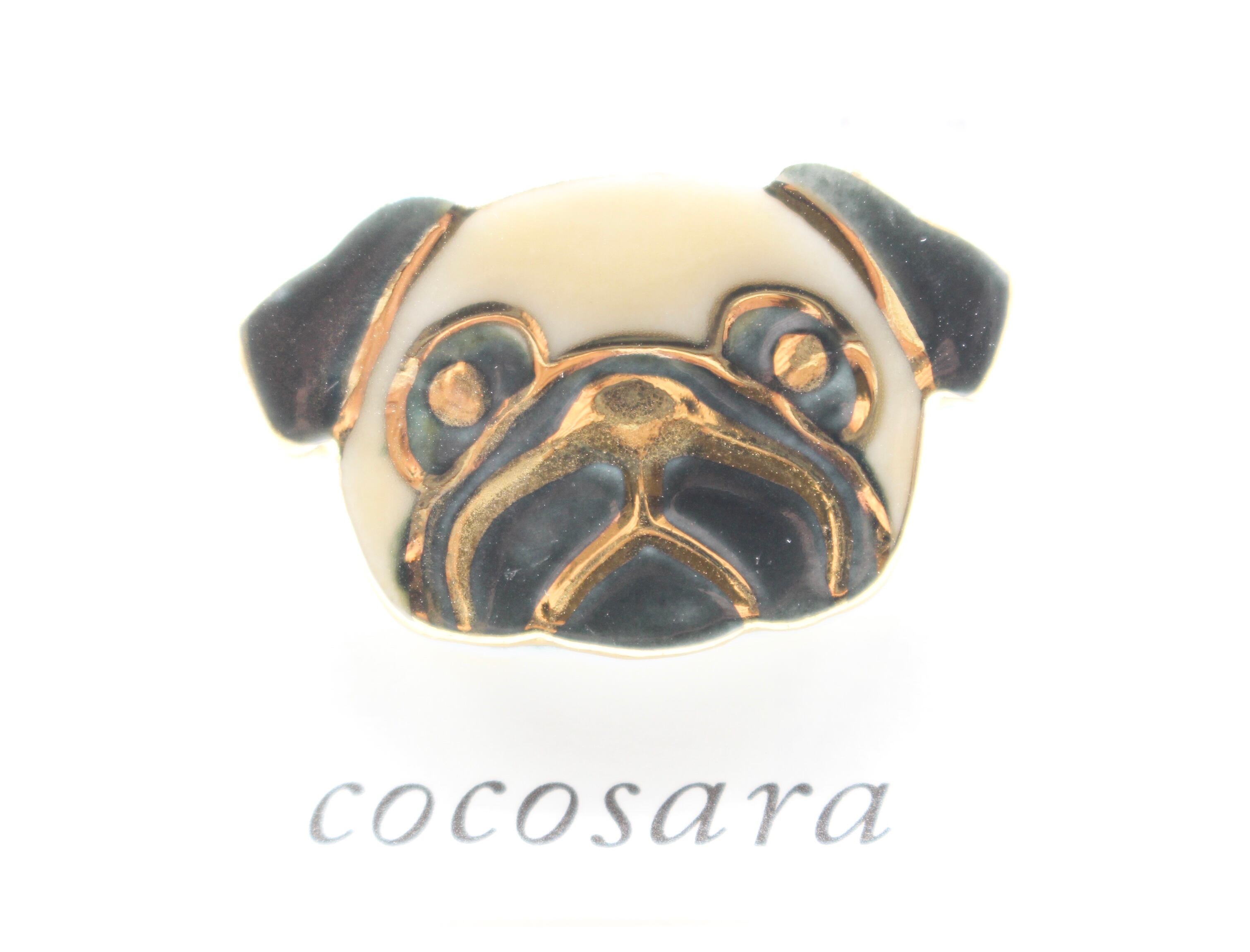 有田焼ブローチ パグ(ベージュ×ブラック×ゴールド)