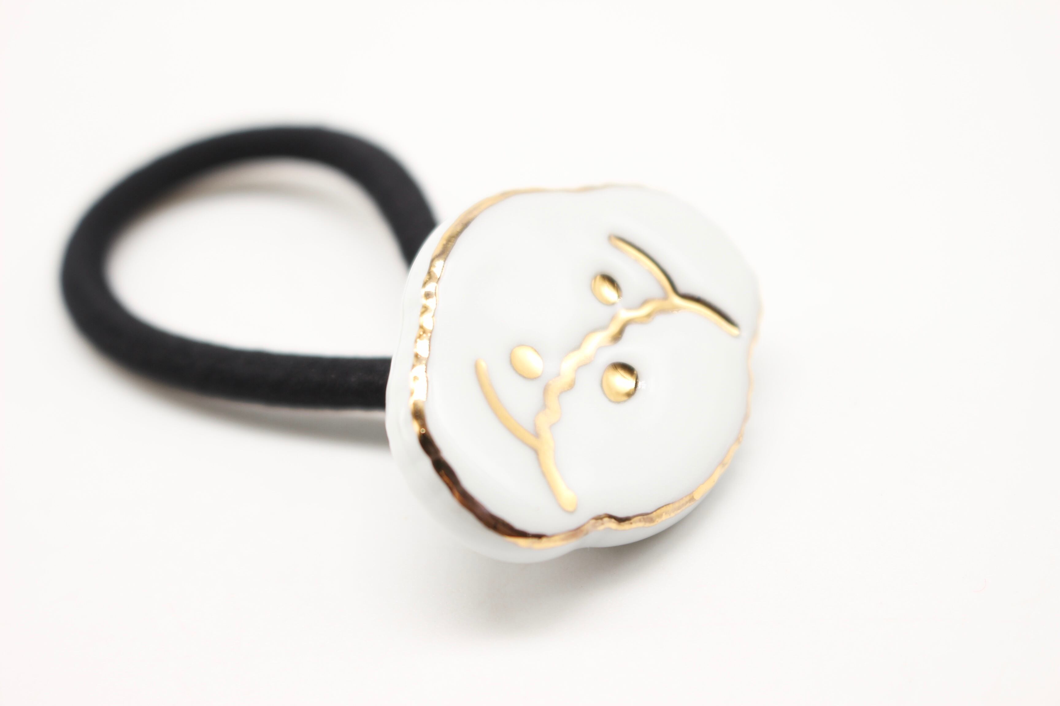 有田焼ヘアゴム プードル(ホワイト×ゴールド)