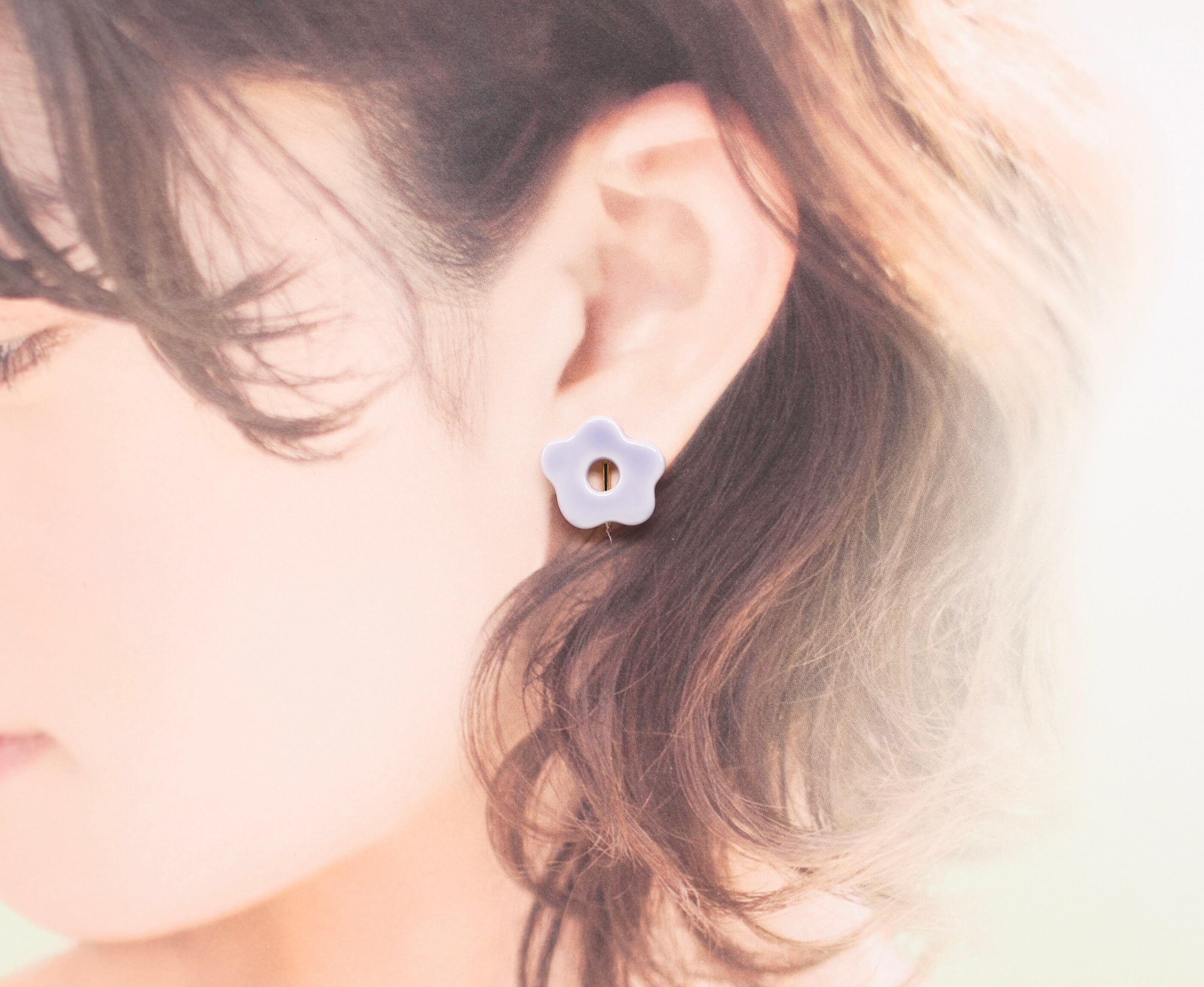 有田焼イヤリング おはじきみたいなお花(薄紫)