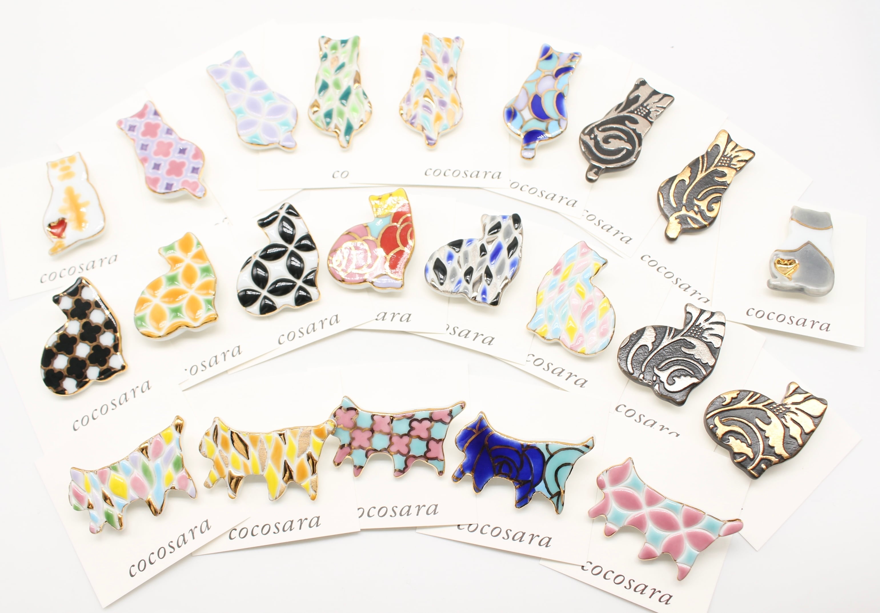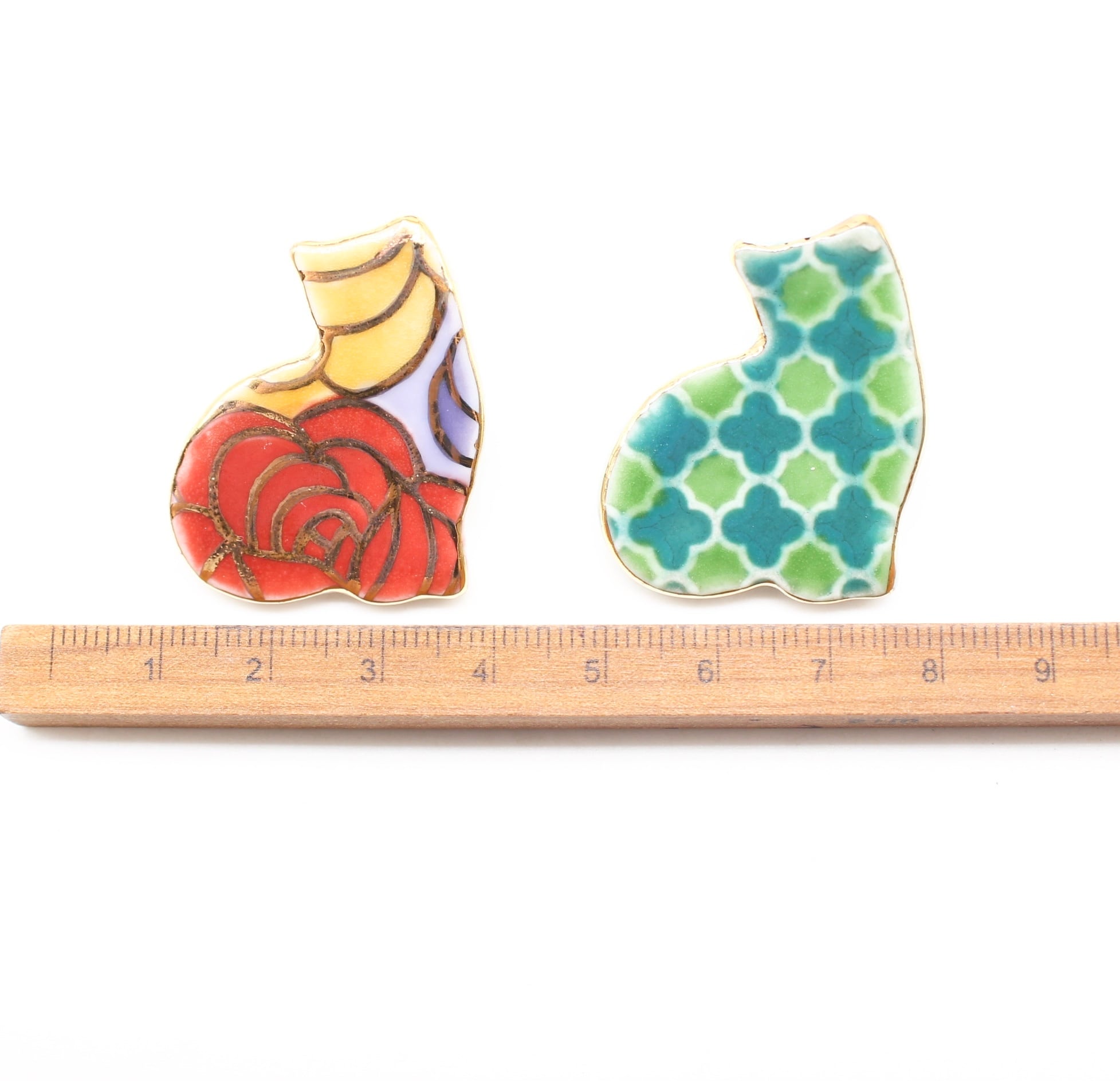 有田焼の伝統とネコの可愛さを楽しめるブローチです。おすわりしている姿がとても愛らしいネコちゃんです。手作りのため、一つ一つ表情や色合いが異なり、それぞれが個性を持っています。お洋服やバッグに付けるだけで、オシャレ度がUPすること間違いなし!手持ちのアイテムにアクセントを加えたい方におすすめです。また、有田焼らしい上品な仕上がりと丈夫な作りで長くご使用いただけます。ネコ好きの方や、有田焼の美しさを楽しみたい方には特におすすめです。普段使いはもちろん、大切な日のコーディネートにもぴったりです。自分へのご褒美やプレゼントにぜひお選びください。